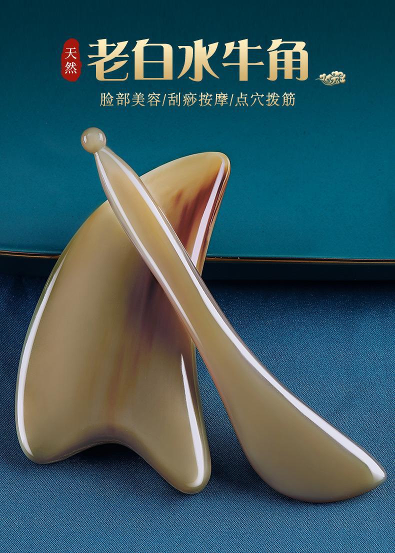 (old hand model) white water horn scraping board 3-6mm + tendon stick (comes with essential oil + acupoint map + cloth bag)