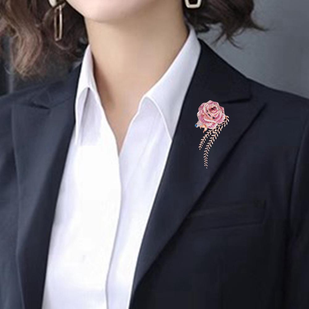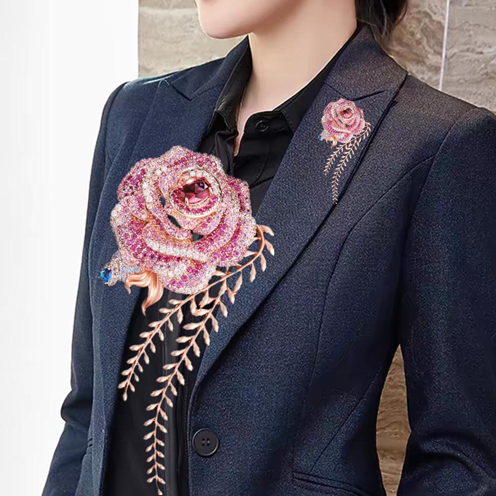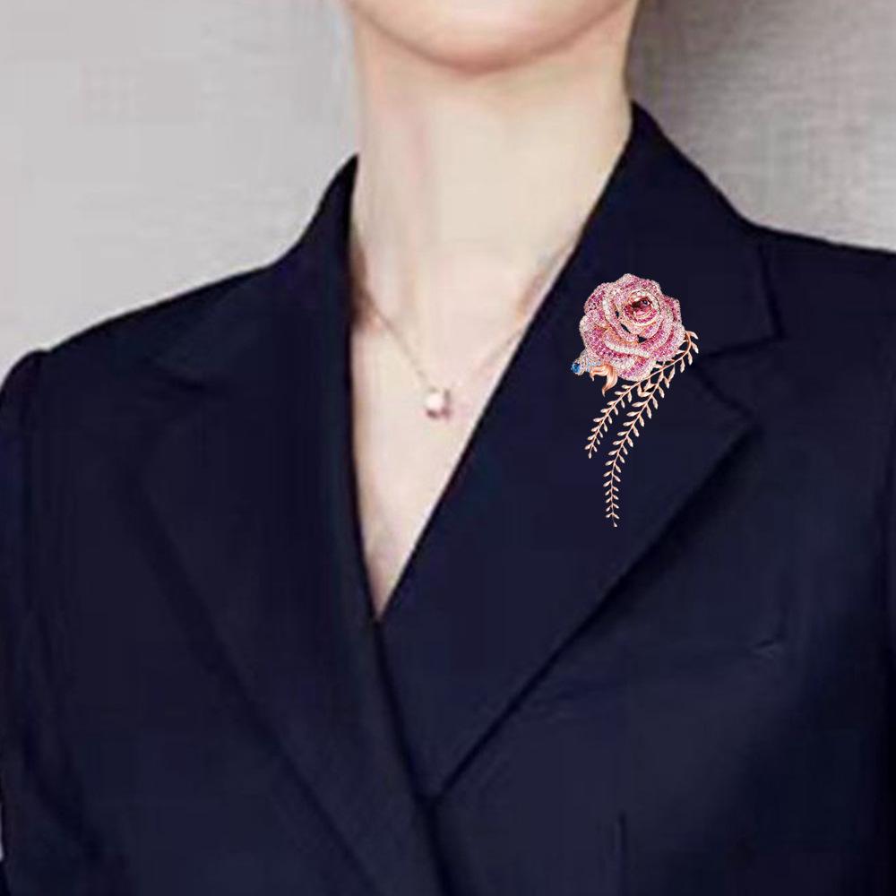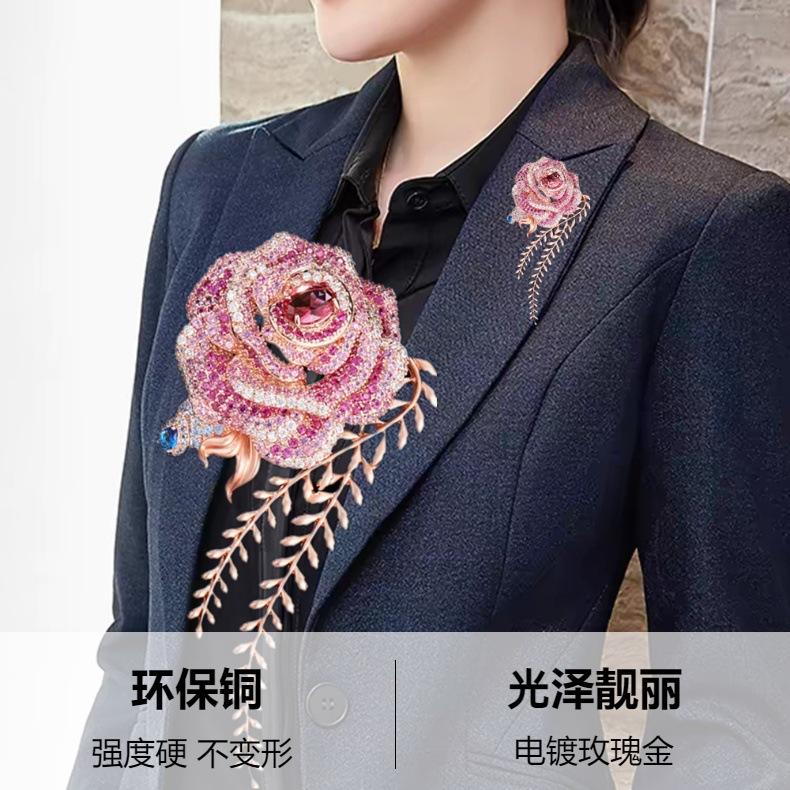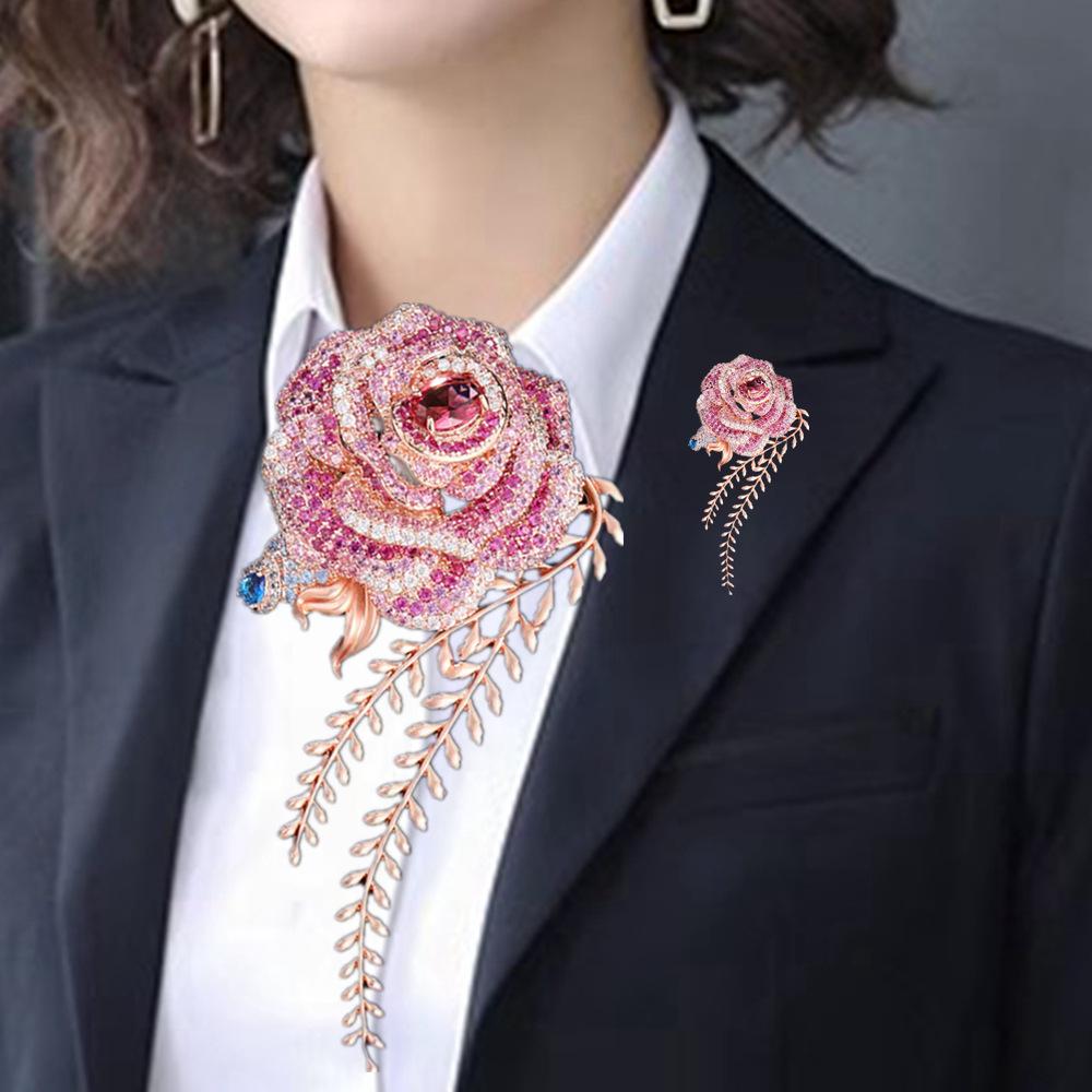 Nuevo Broche de Rosa de Alta Gama de Alta Resistencia Ropa de Mujer Micro-Incrustado Zircón Corsage Accesorios de Ropa Versátiles Abrigo
