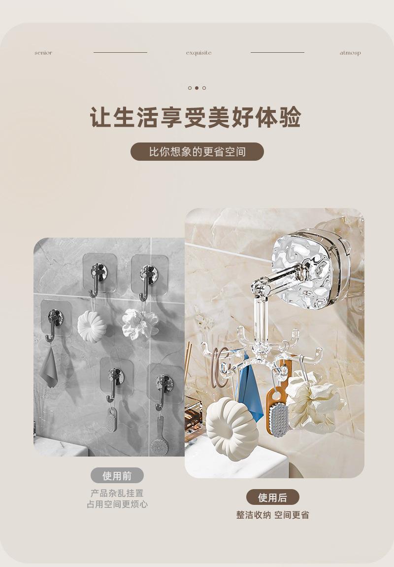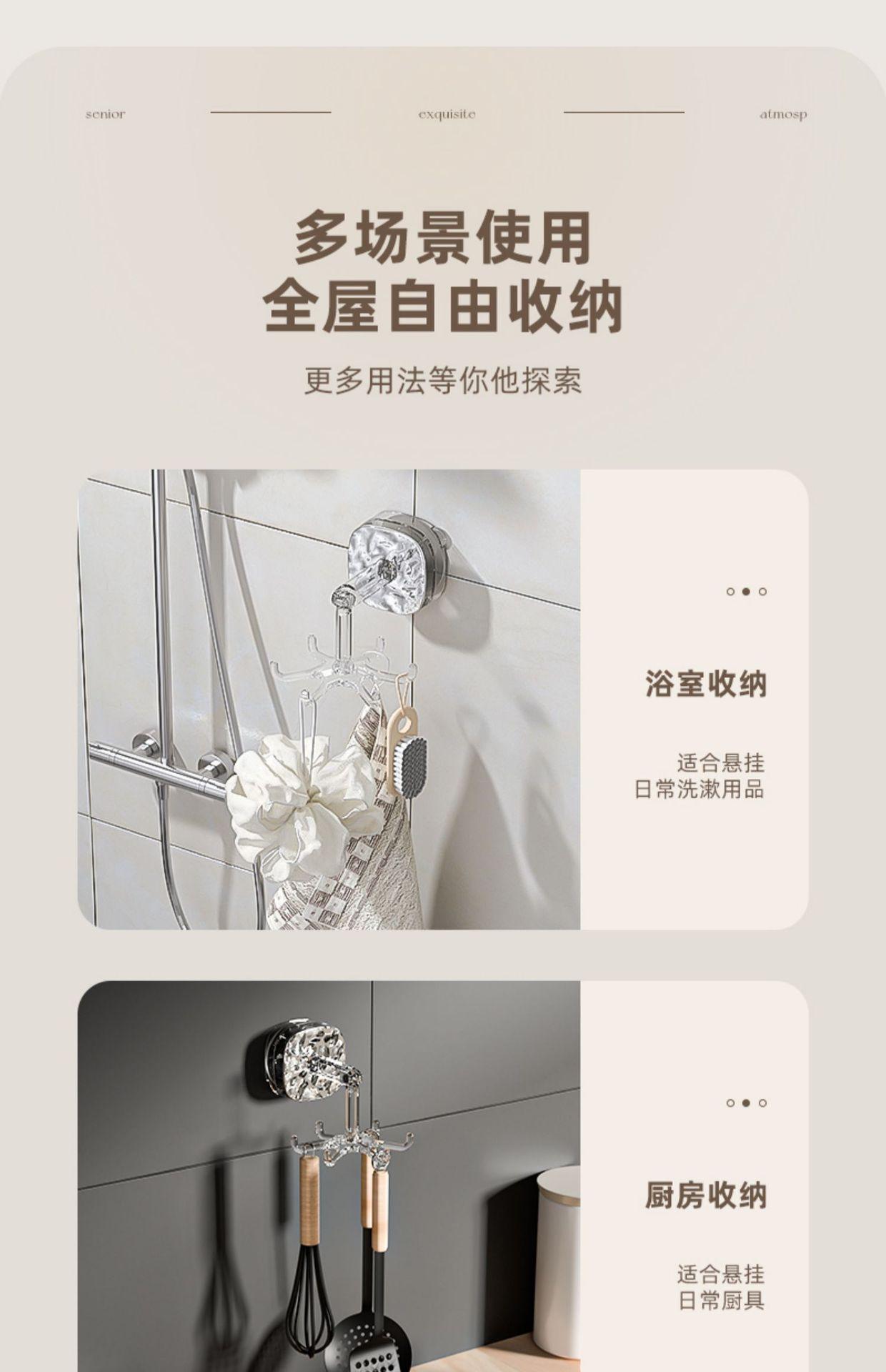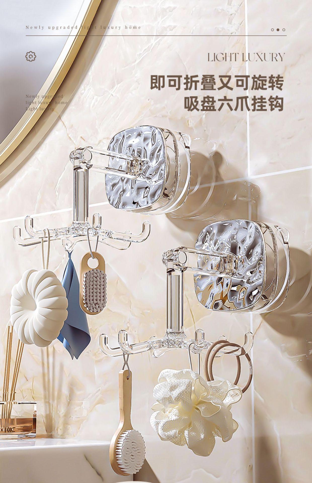 Gancho de ventosa de 6 garras para baño, potente estante para inodoro sin perforaciones, cocina, hogar, para colgar llaves, gancho giratorio