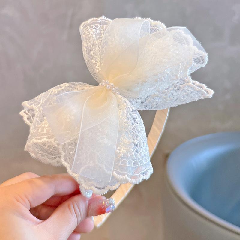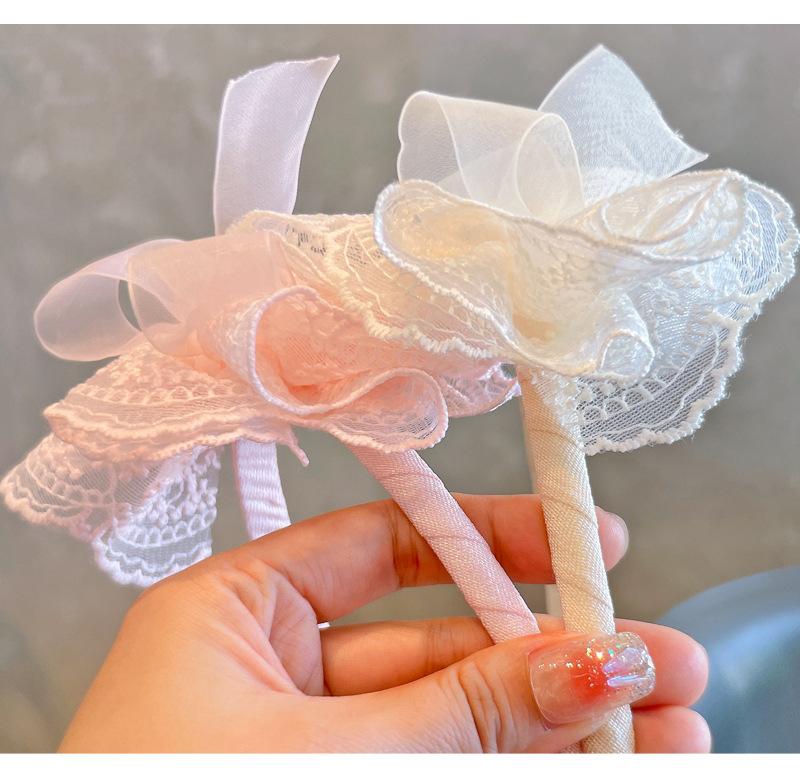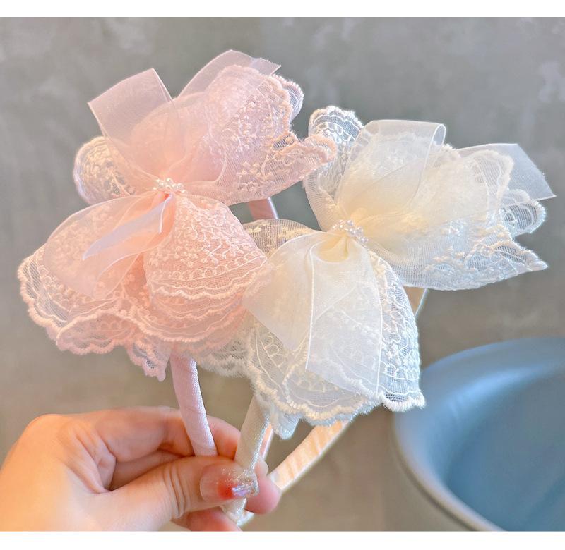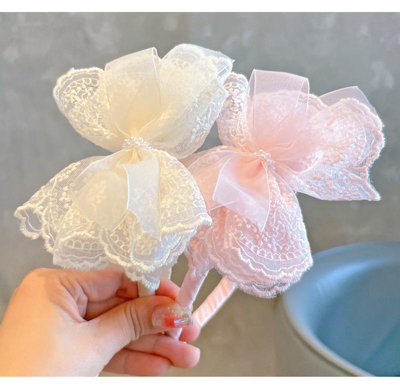 24 Nuevo Estilo Coreano Hada Encaje Hebilla para la Cabeza Lazo Perla Princesa Niños Banda para el Cabello Tocado Accesorios para el Cabello Súper Hada