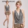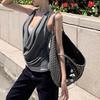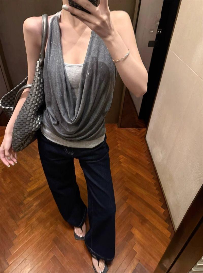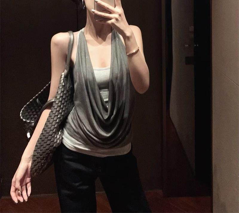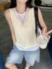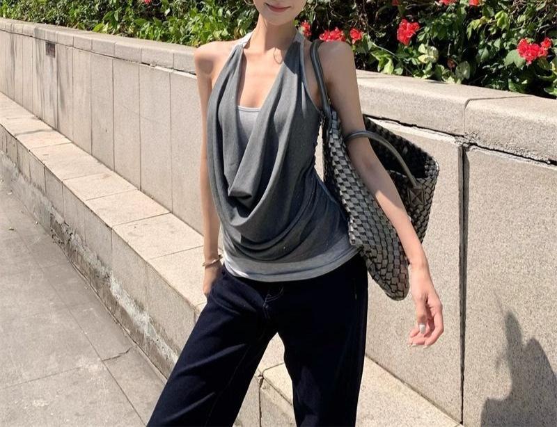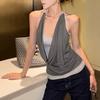 Camisola para Mujer 2025 Nuevo Diseño de Verano Espalda Hermosa Estilo Coreano Gris Falso Dos Piezas Top sin Mangas Ins Tendencia