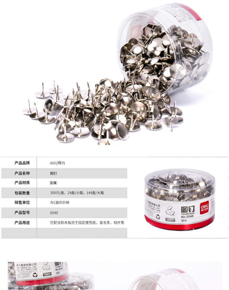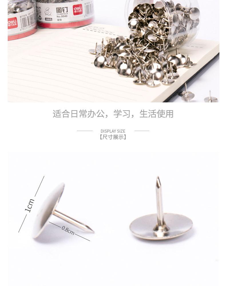Chinchetas Deli 0040 de metal con cabeza redonda, chinchetas, alfileres para corcho, alfileres para pared, tachuelas, 300 piezas/caja, oficina al por mayor