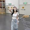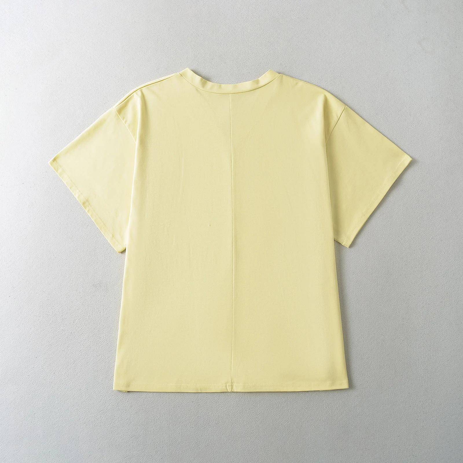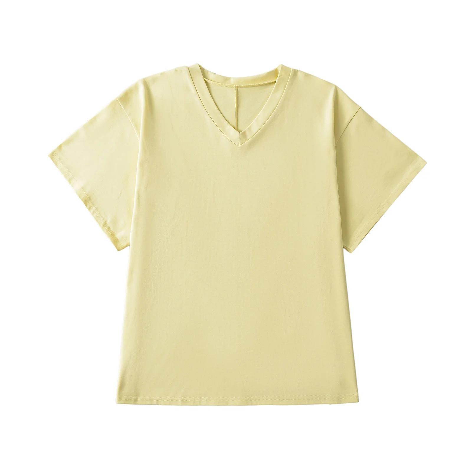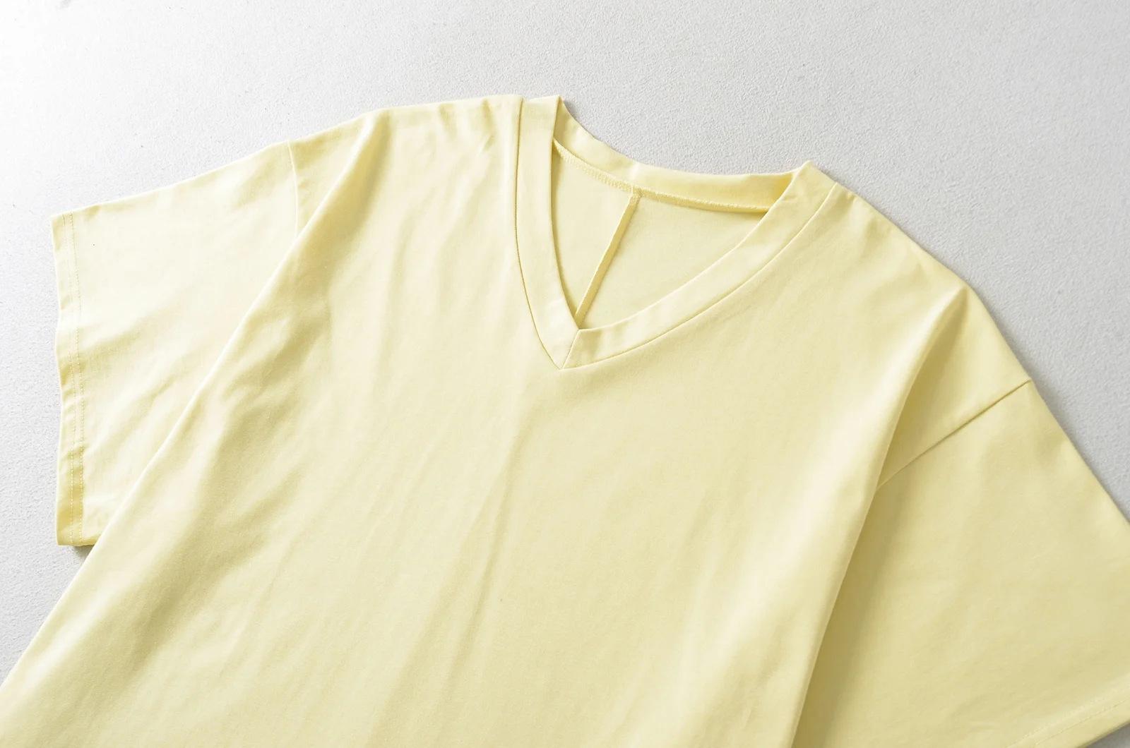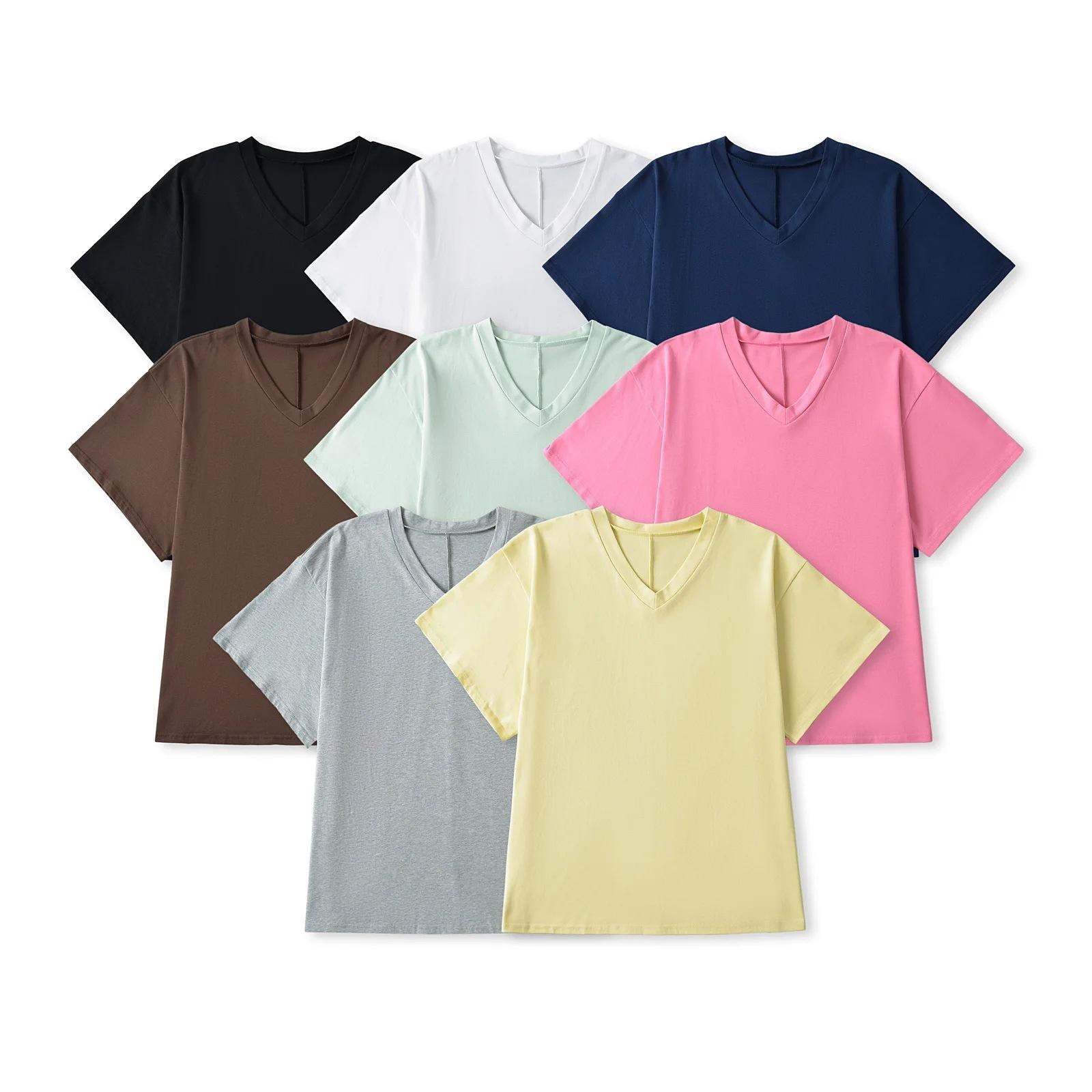 Camiseta Blanca Cuello en V Hombro Manga Corta Mujer Verano 2024 Nuevo Estilo Estilo Relajado Color Sólido Base Top Chica Picante