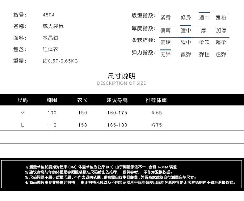 Disfraz de Halloween otoño e invierno caricatura pijama animal de una pieza ropa de casa linda para mujer canguro ropa de actuación animal