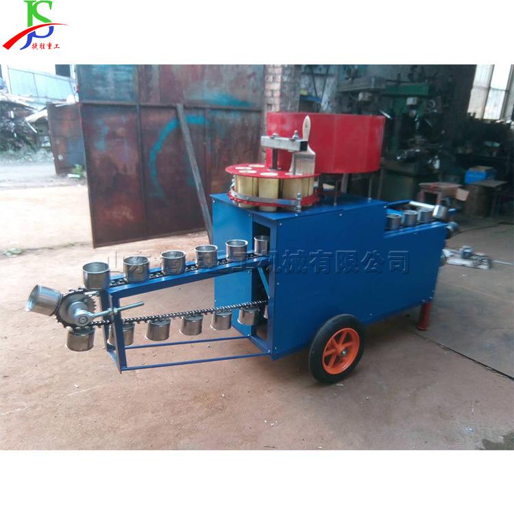 El cargador de tierra para macetas nutritivas funciona con un motor eléctrico o de gasolina que impulsa la caja de engranajes y gira el eje central y la biela. El eje central impulsa las aletas de la tolva para alimentar la tierra de las plántulas al barril. Este gira para cargar la tierra de las plántulas en la maceta nutritiva de forma cuantitativa. El vástago de conexión gira para completar el transporte de la maceta. La maceta se carga y retira manualmente durante todo el proceso.