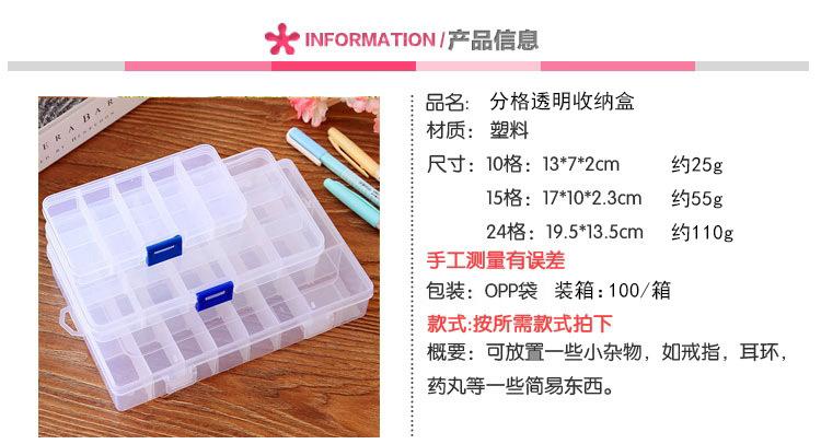 Caja de almacenamiento de plástico transparente desmontable de 10 rejillas, 15 rejillas, 24 rejillas con tapa, organizador simple portátil, caja para piezas de joyería