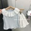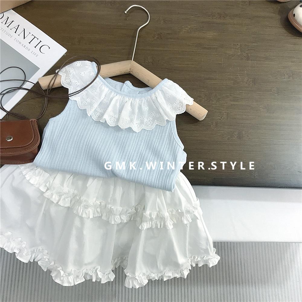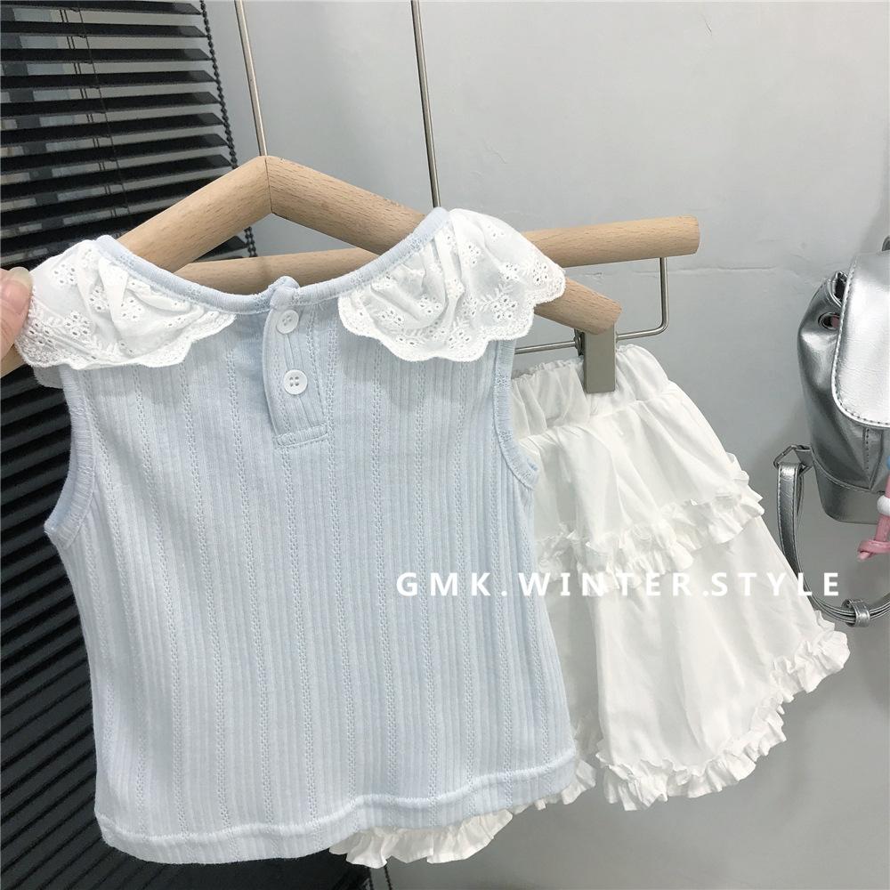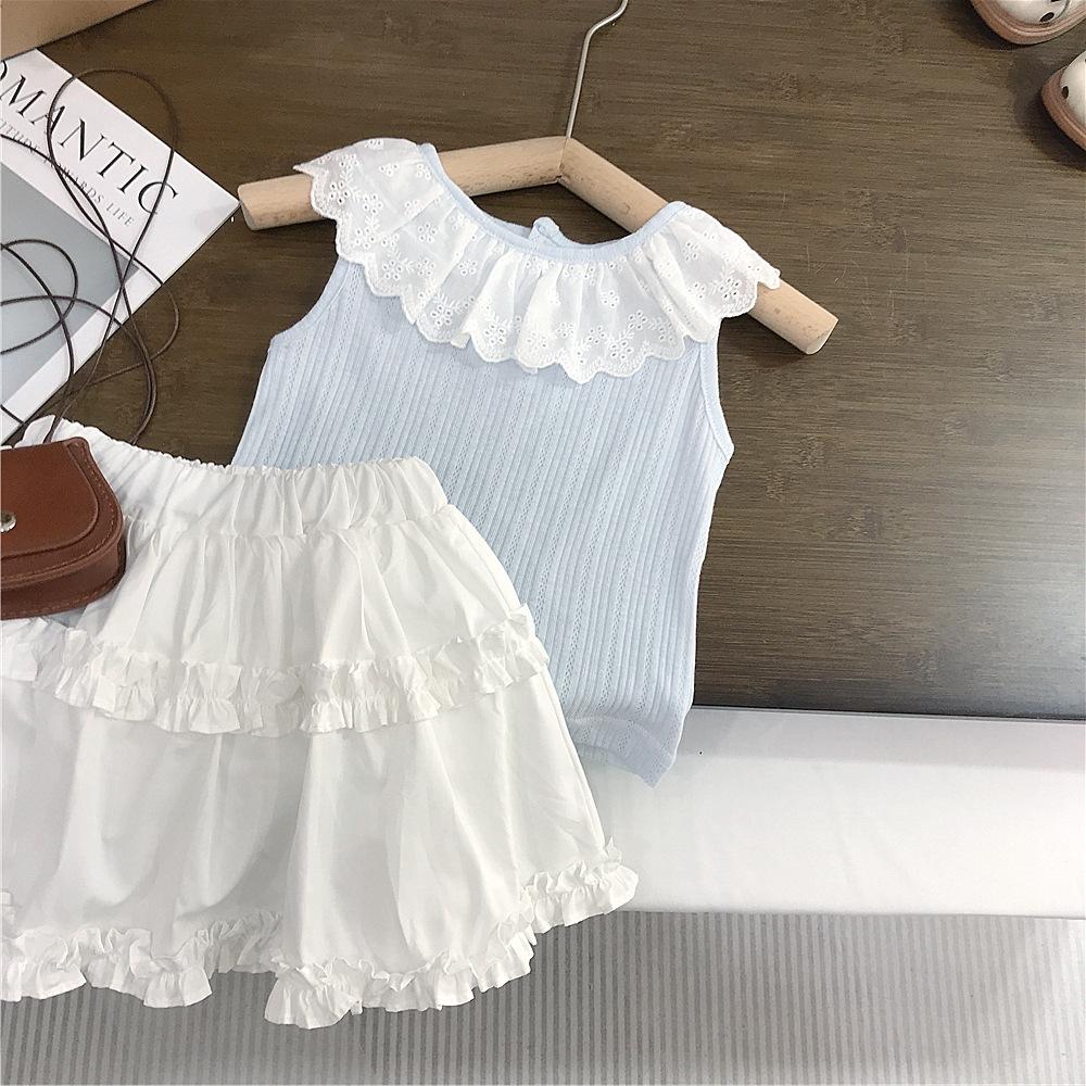 Camiseta básica sin mangas con cuello de muñeca de encaje para niños, delgada de verano, estilo coreano, ropa para niños, ropa para bebé, conjunto de falda para niñas
