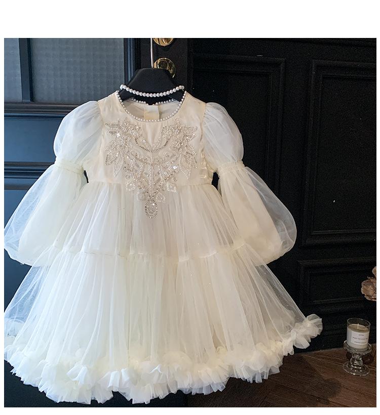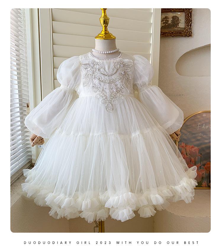 Vestido de Princesa para Niñas de Alta Gama Vestido de Cumpleaños para Niña Vestido de Moda para Niños Estilo Corte Perla