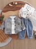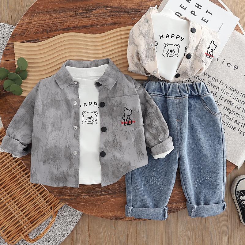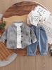Traje de Tres Piezas Otoño 2025 Nuevo Guapo Moda Infantil para Niños Letras Estampadas Guapo Casual Bebé Transfronterizo