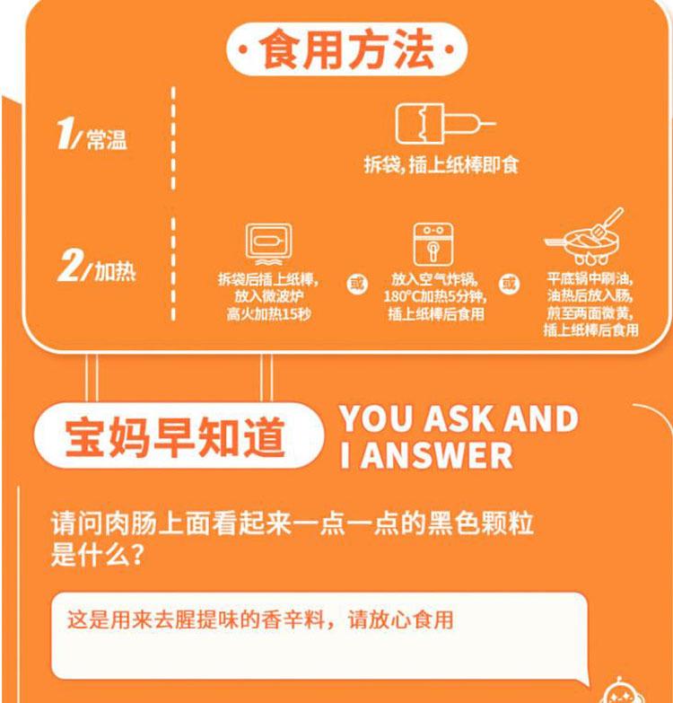 Yiya salchicha de cerdo para niños salchicha para bebé desayuno instantáneo queso salchicha de res salchicha de jamón hot dog salchicha pura fragante
