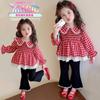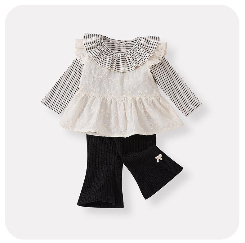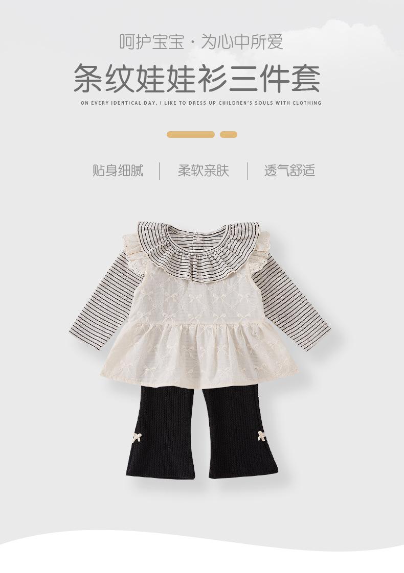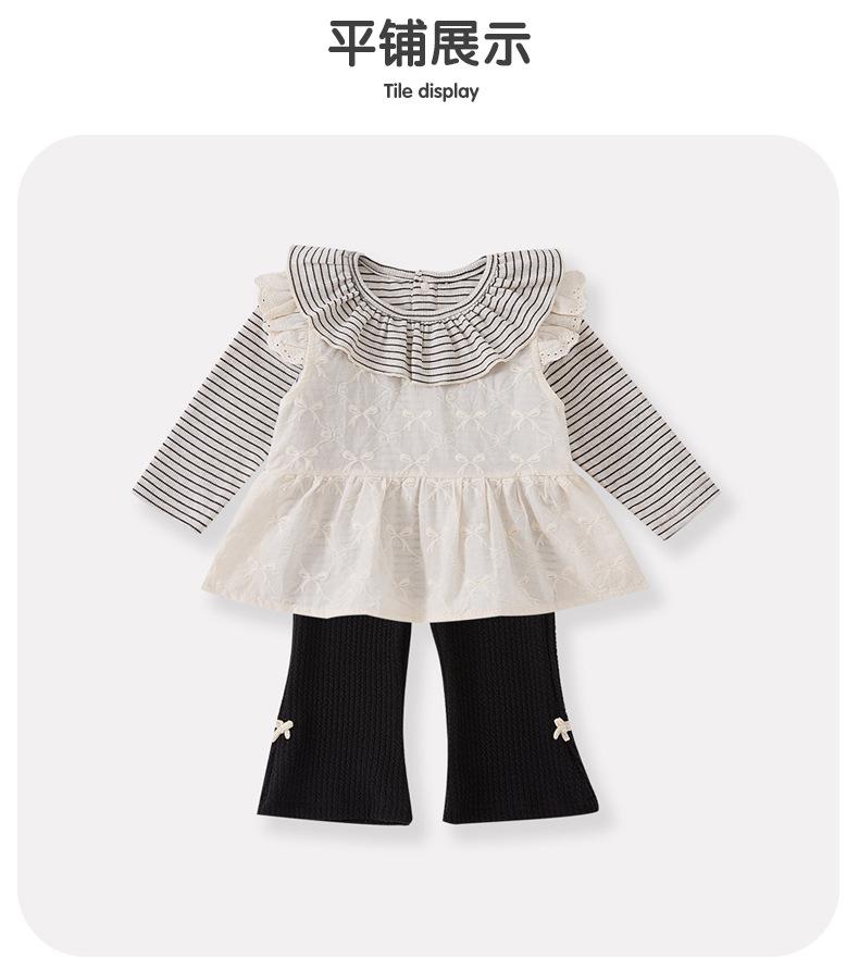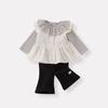Conjunto Dulce de Chaleco para Bebé y Niño Pequeño Otoño 2025 Camisa Básica para Niña Pequeña Camisa de Muñeca Pantalones Acampanados Conjunto de Tres Piezas