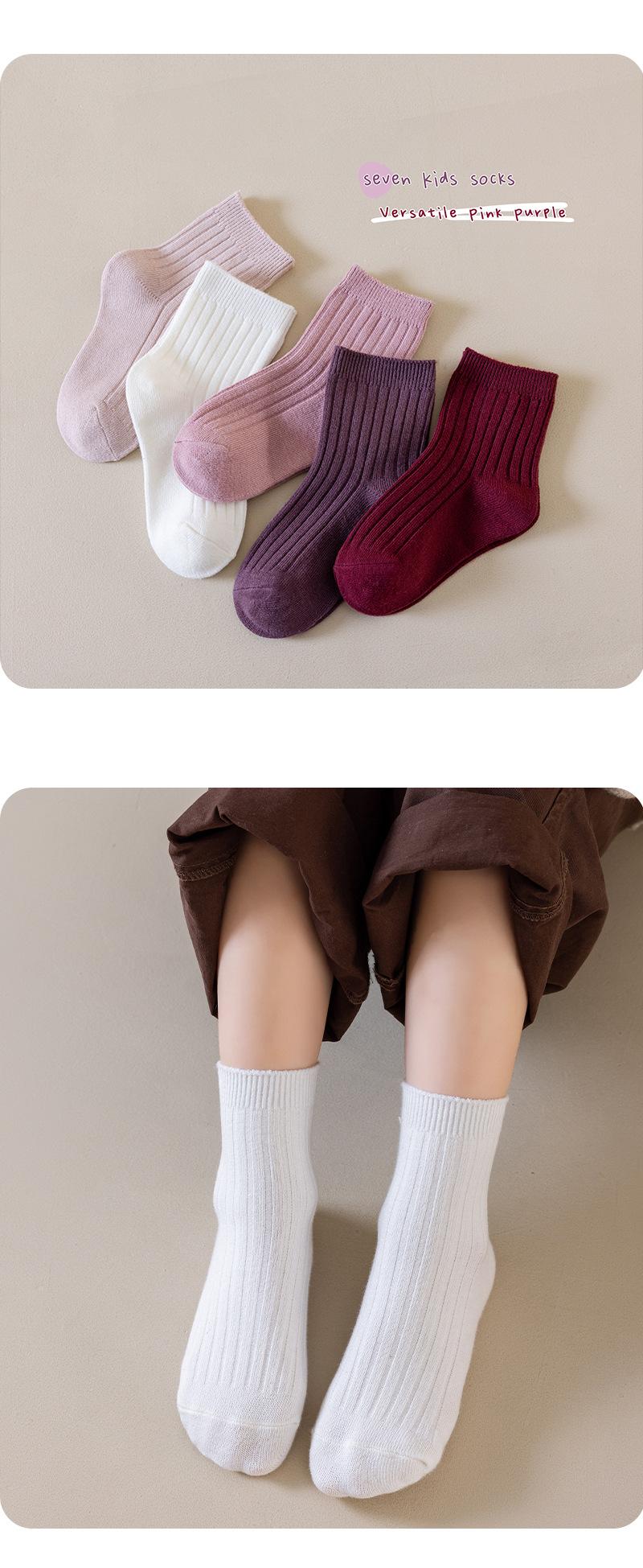 Calcetines para Niños 2025 Otoño e Invierno Nuevos Calcetines Acanalados de Color Sólido Rosa Morado Calcetines a Media Pantorrilla para Niños y Niñas Calcetines de Estudiante Envío Gratis