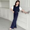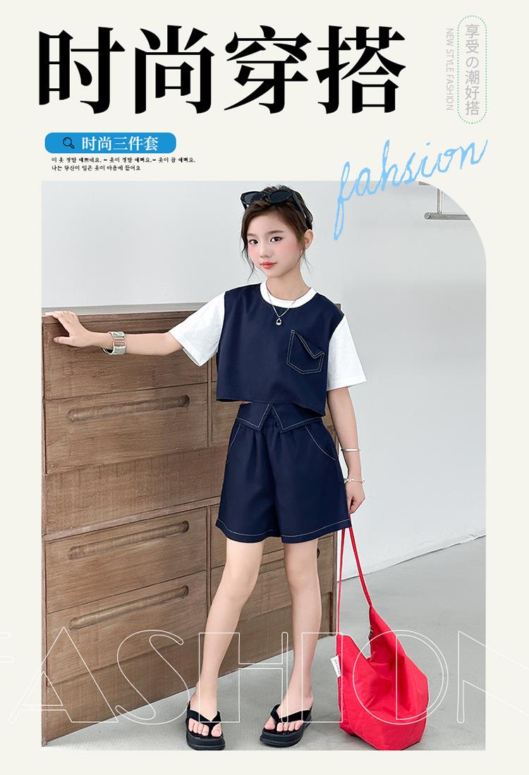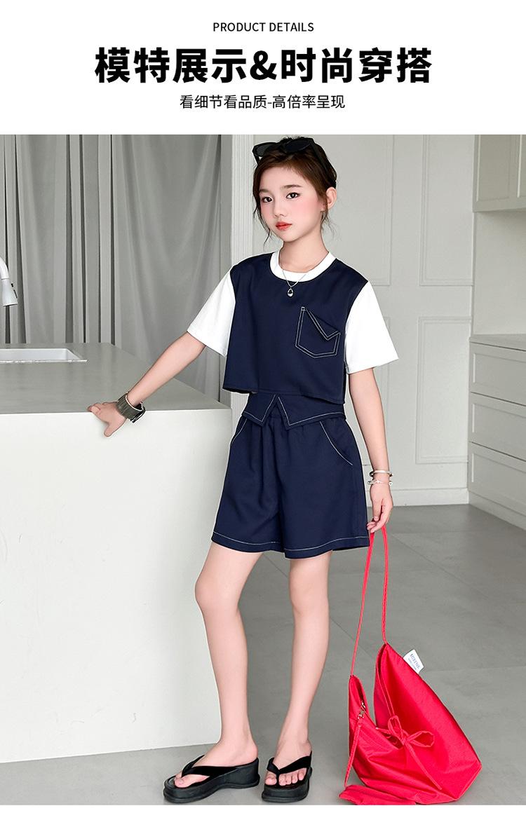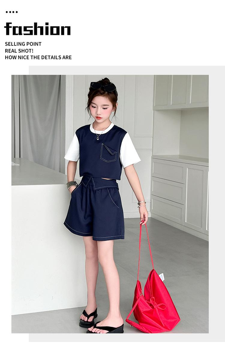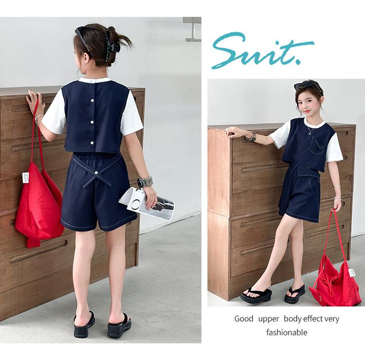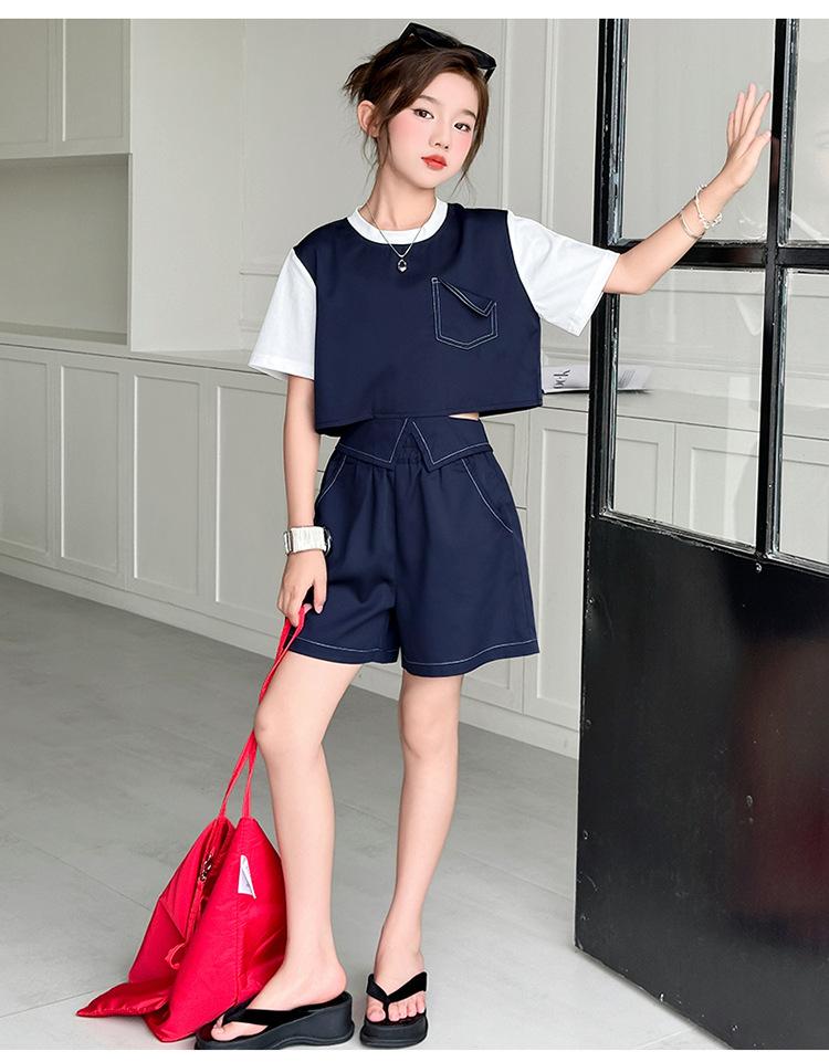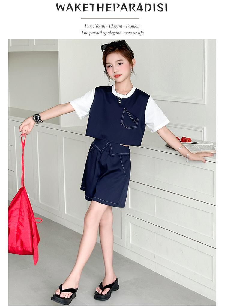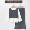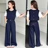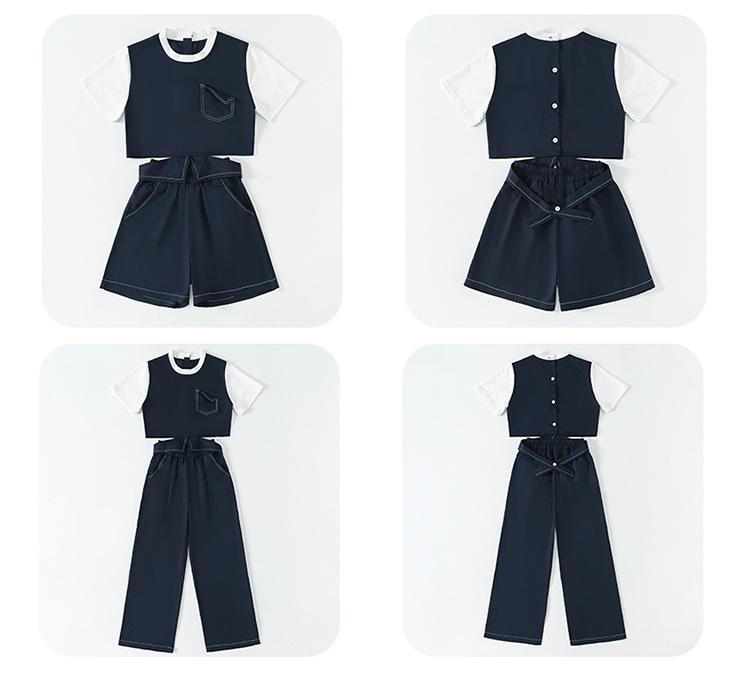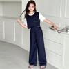 Conjunto de Pantalón Largo Sencillo de Dos Piezas Falso Estilo Coreano para Niñas Nuevo de Verano con Bloque de Color Sencillo Versátil Conjunto de Dos Piezas a la Moda
