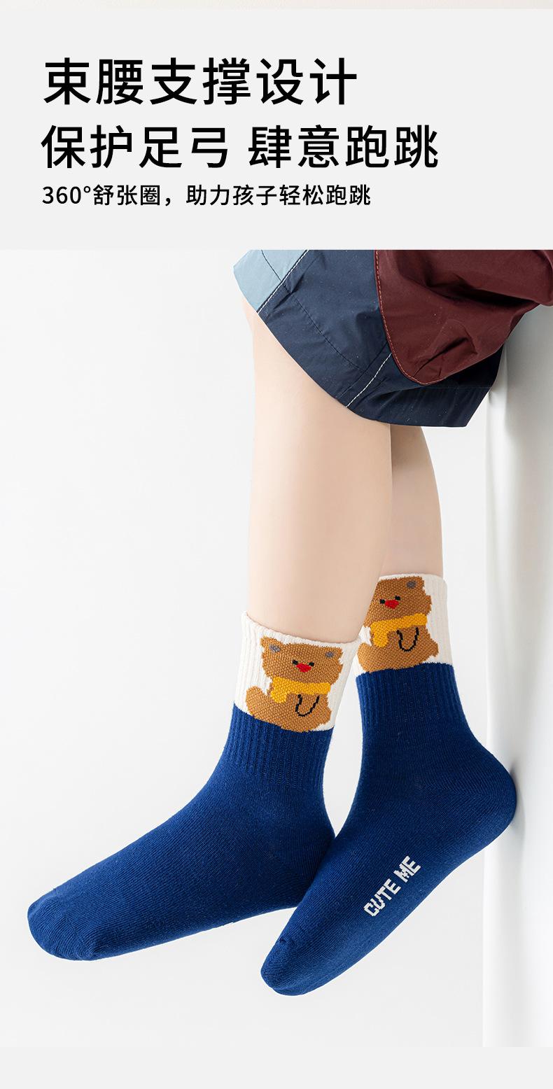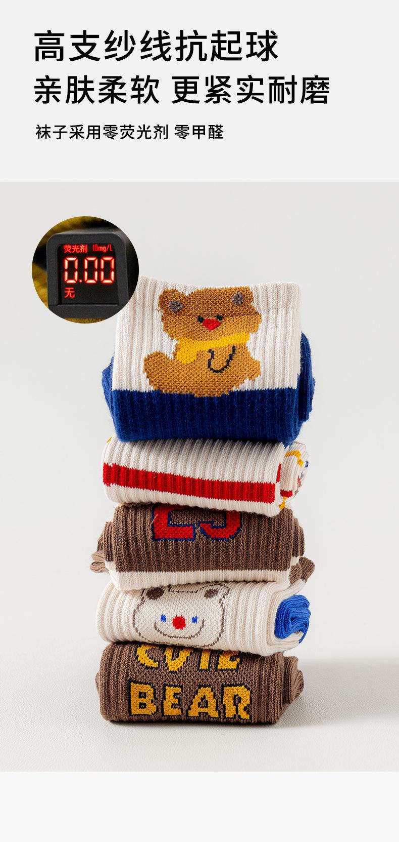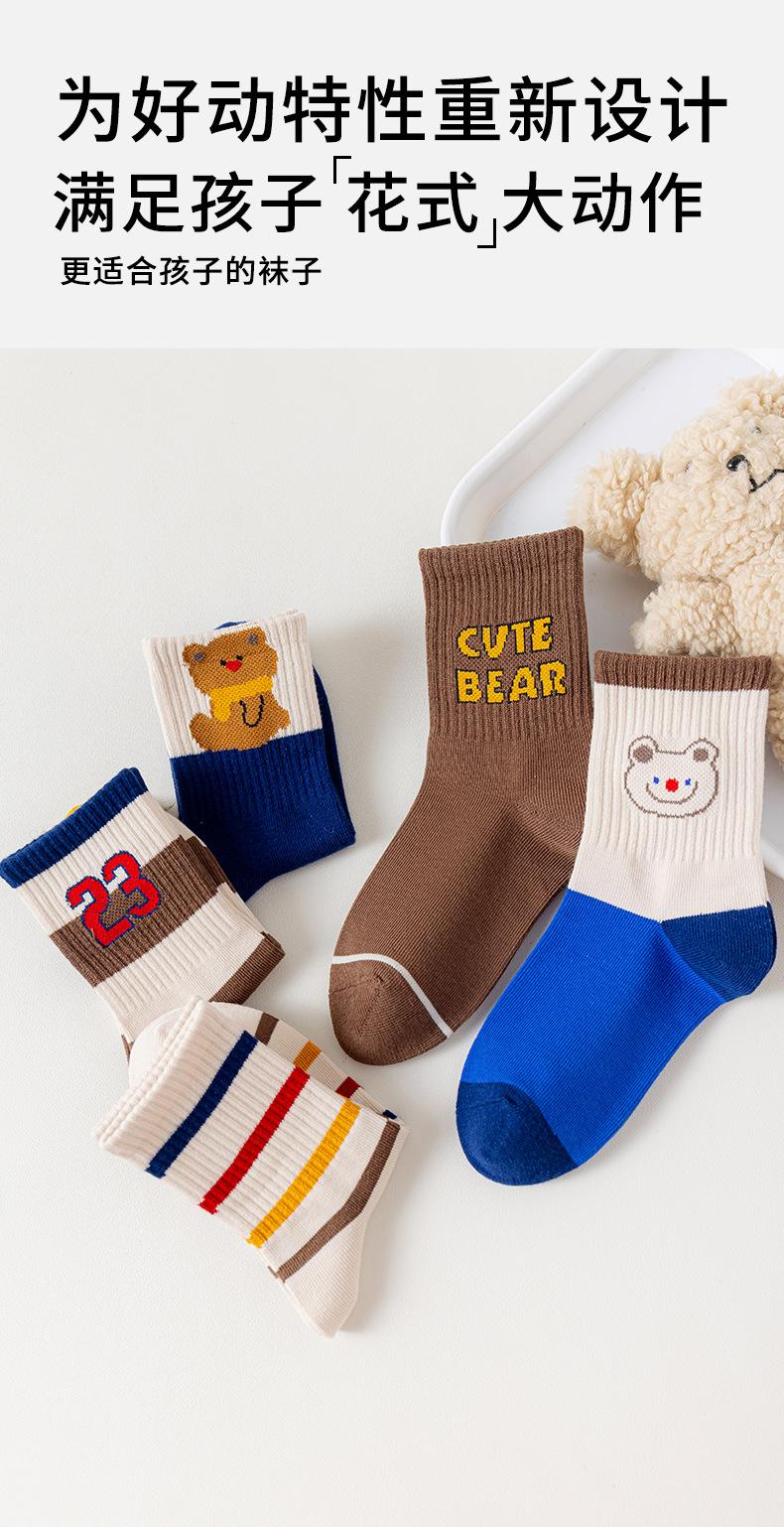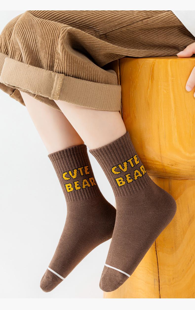 Calcetines para Niños Otoño e Invierno Nuevos Productos Calcetines de Algodón sin Costuras a Rayas de Osito de Dibujos Animados para Niños Transpirables Absorbentes del Sudor Calcetines de Media Caña para Estudiantes
