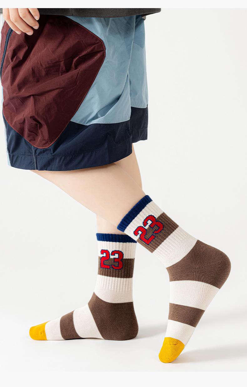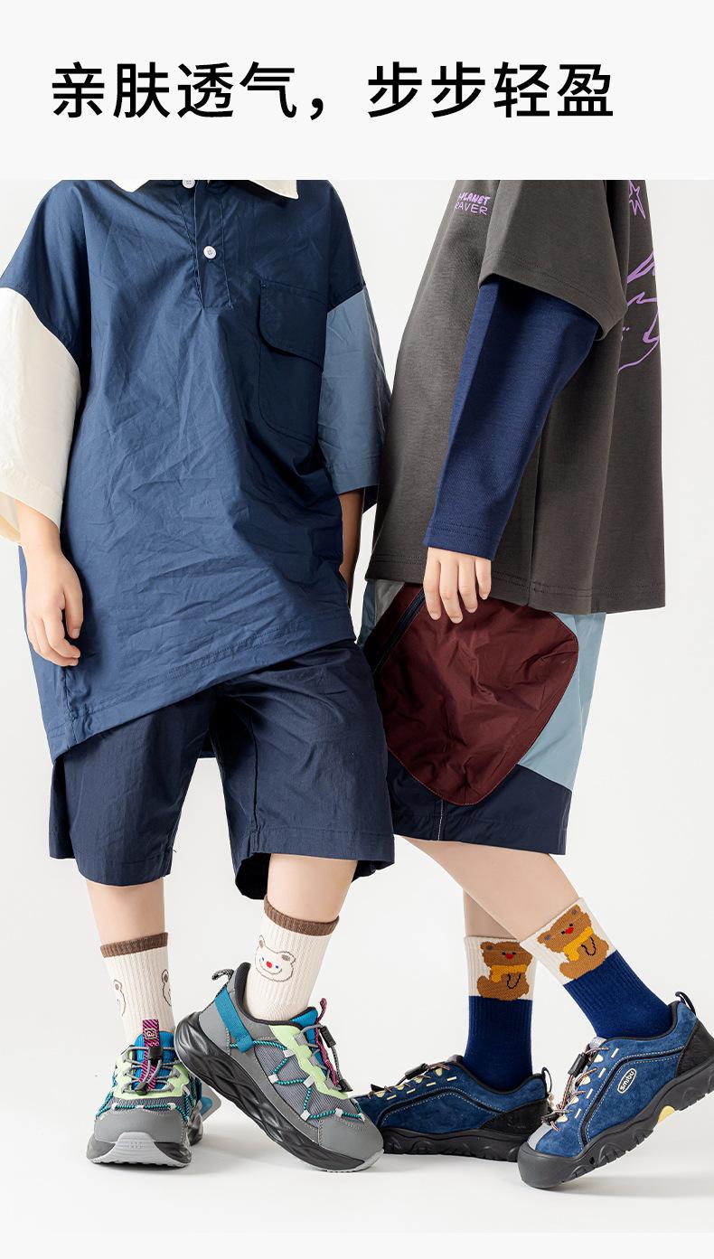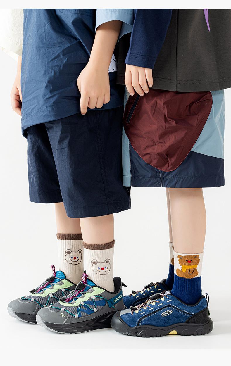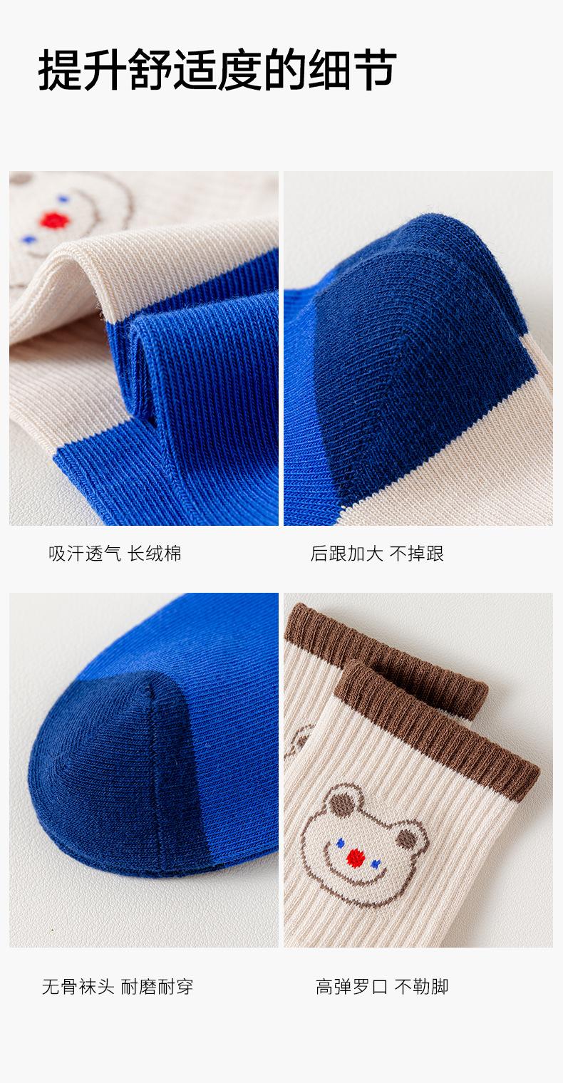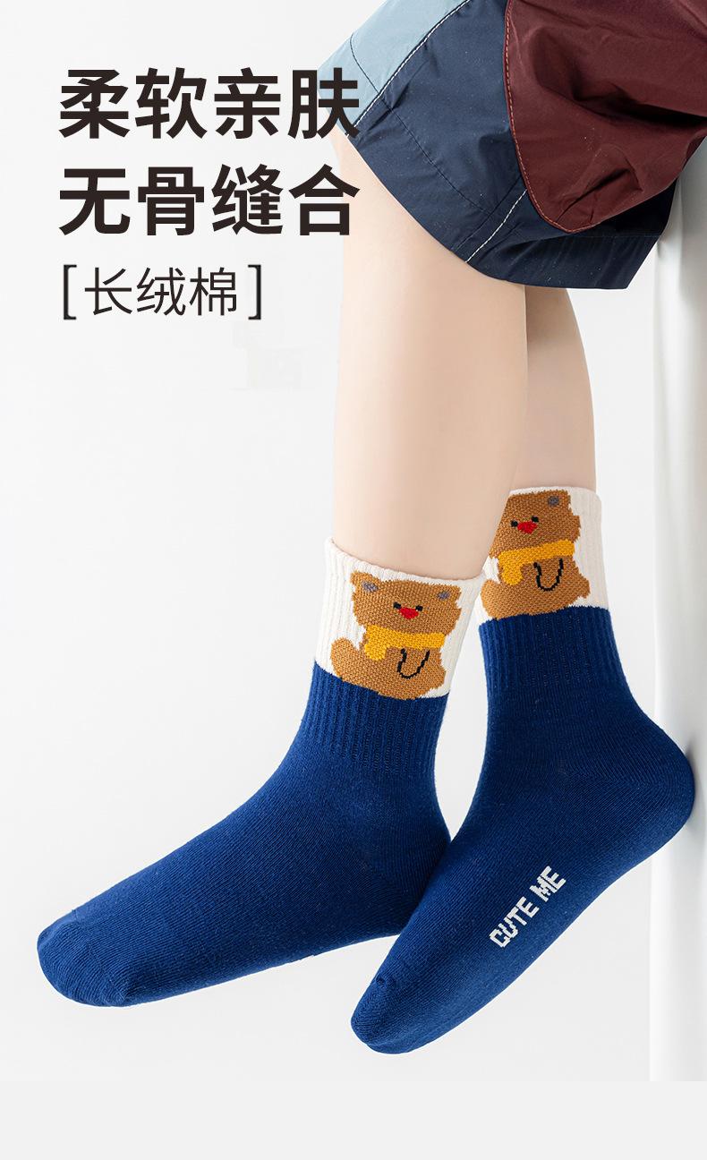 Calcetines para Niños Otoño e Invierno Nuevos Productos Calcetines de Algodón sin Costuras a Rayas de Osito de Dibujos Animados para Niños Transpirables Absorbentes del Sudor Calcetines de Media Caña para Estudiantes