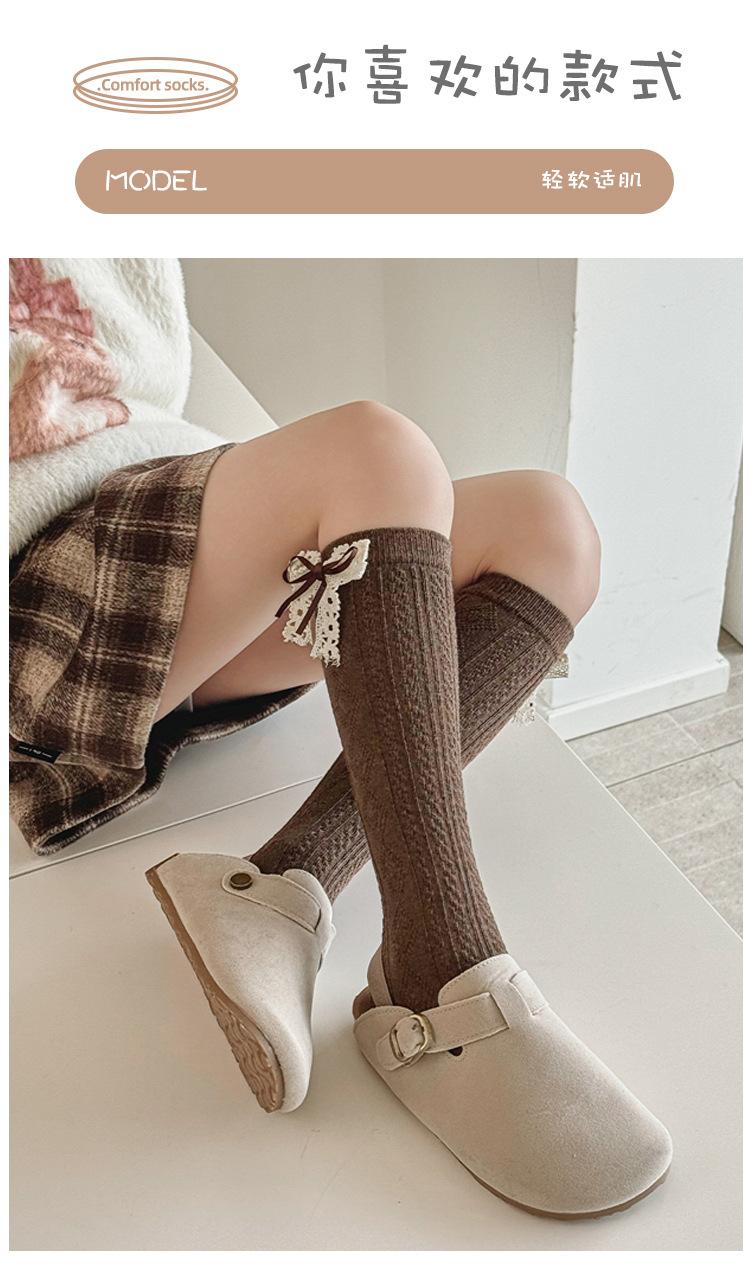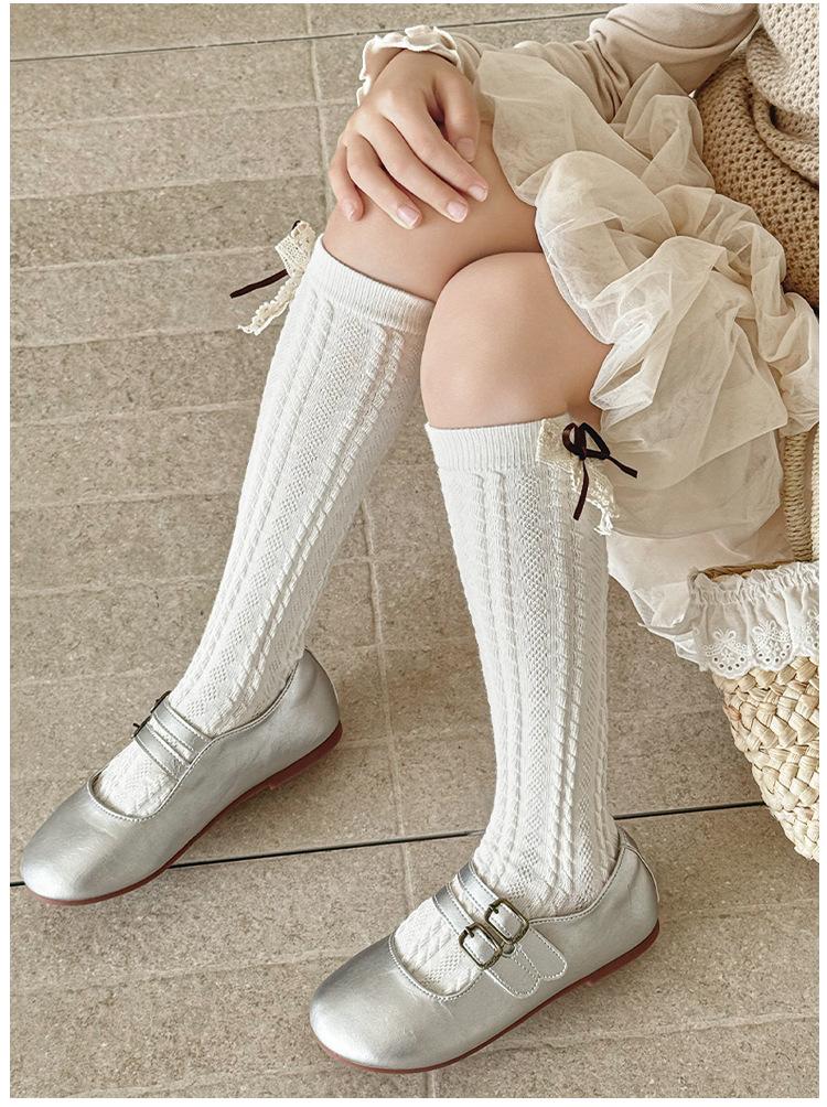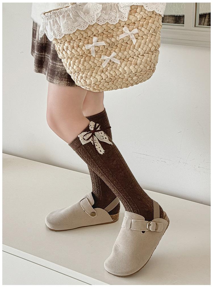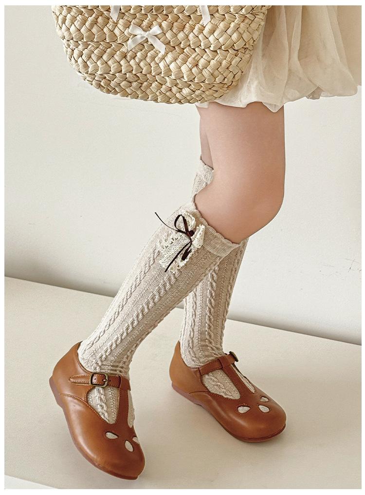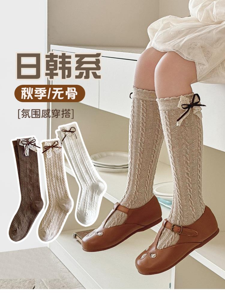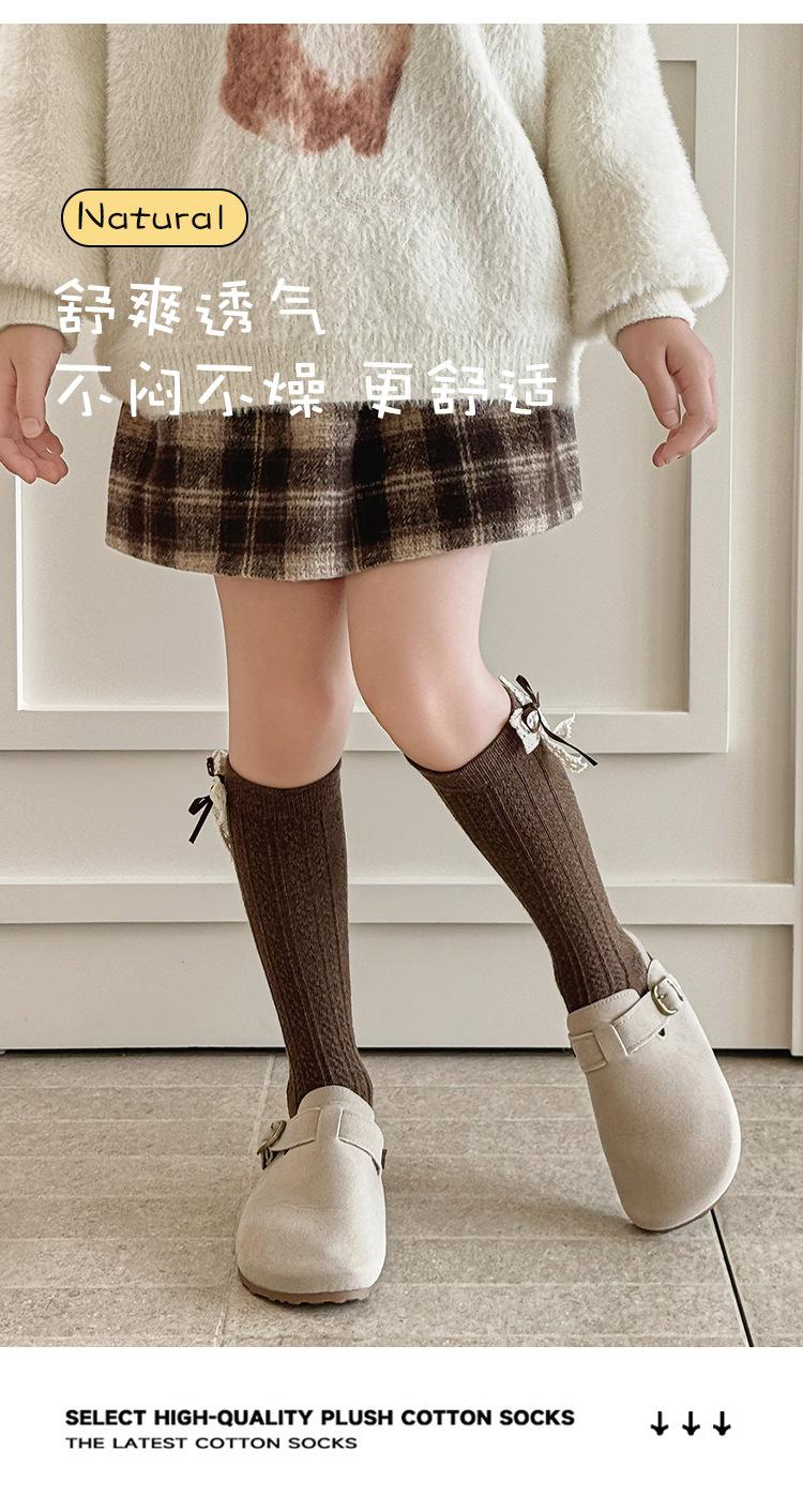 Calcetines para Niñas Primavera y Otoño Calcetines hasta la Rodilla sin Costuras Clase A Otoño e Invierno Doble Capa Calcetines para Niños Lazo Algodón Peinado Calcetines de Pantorrilla