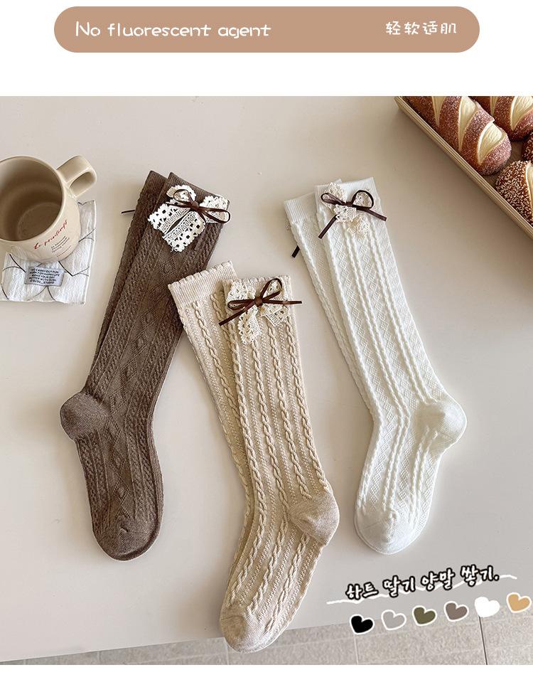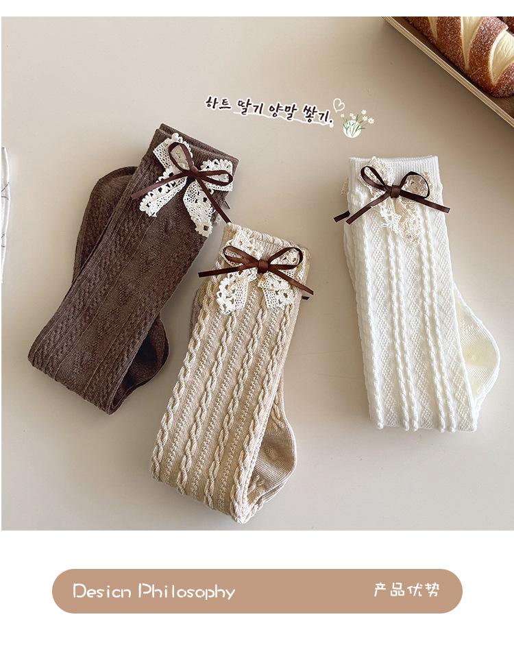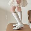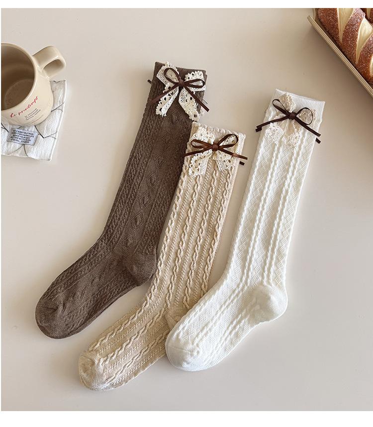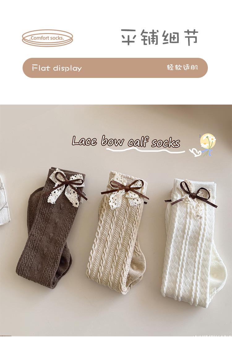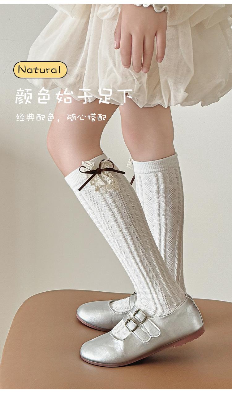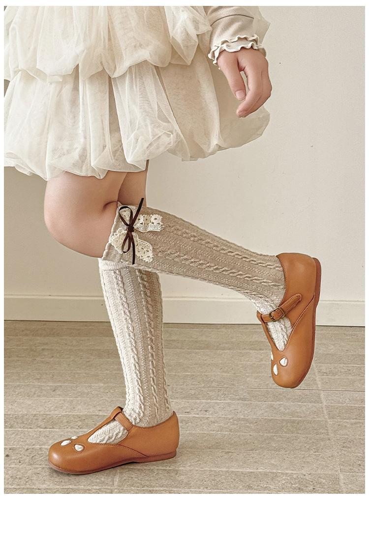 Calcetines para Niñas Primavera y Otoño Calcetines hasta la Rodilla sin Costuras Clase A Otoño e Invierno Doble Capa Calcetines para Niños Lazo Algodón Peinado Calcetines de Pantorrilla