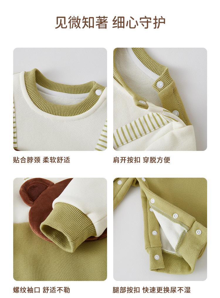 Mameluco de Bebé Cálido Estilo Primavera y Otoño Forrado de Vellón Ropa de Bebé para Niños y Niñas Ropa de Otoño Mameluco con Broches en el Hombro Estilo Grueso de Otoño e Invierno