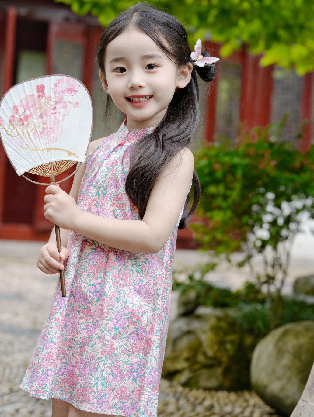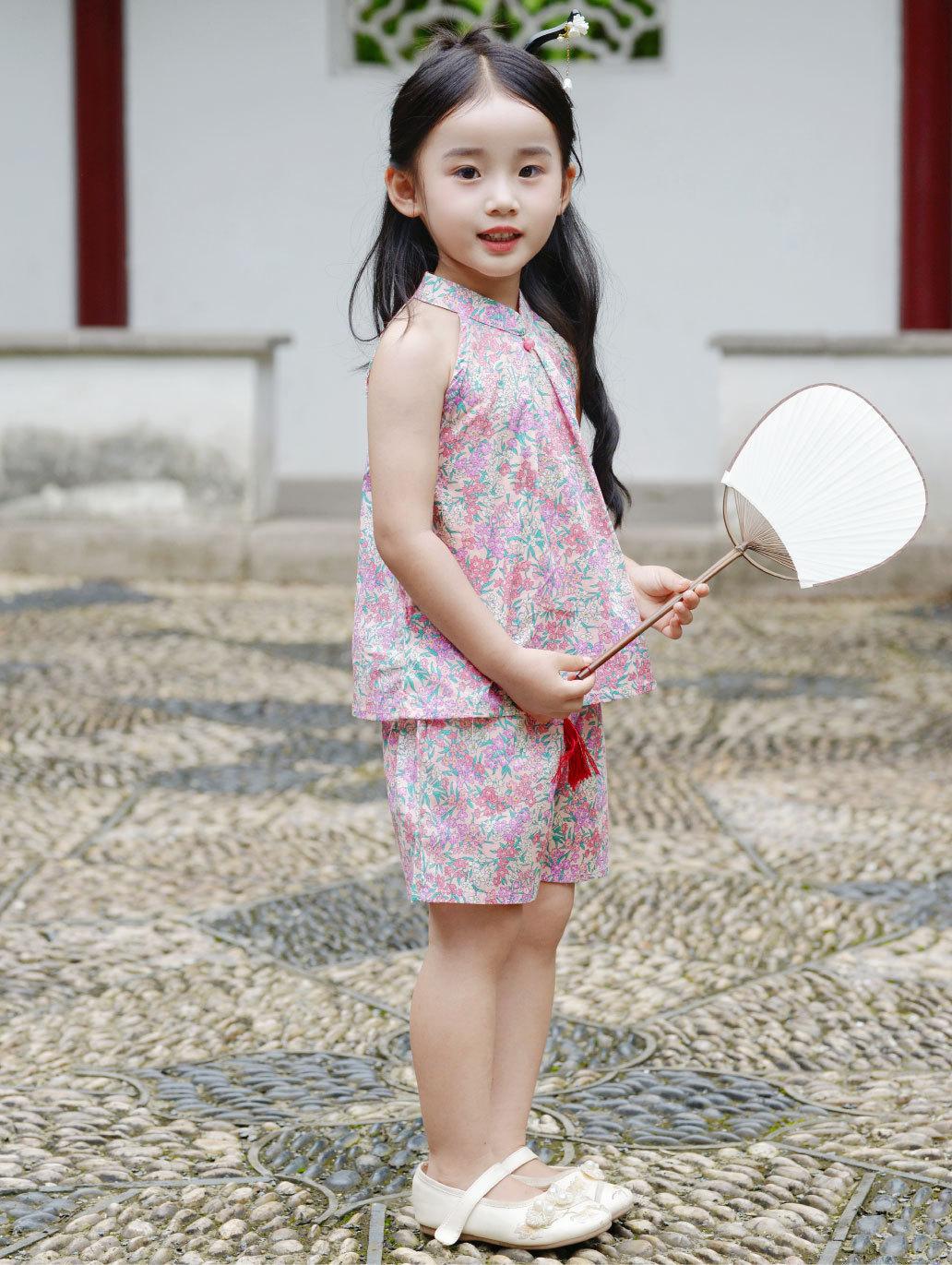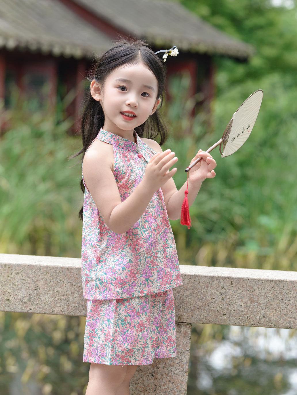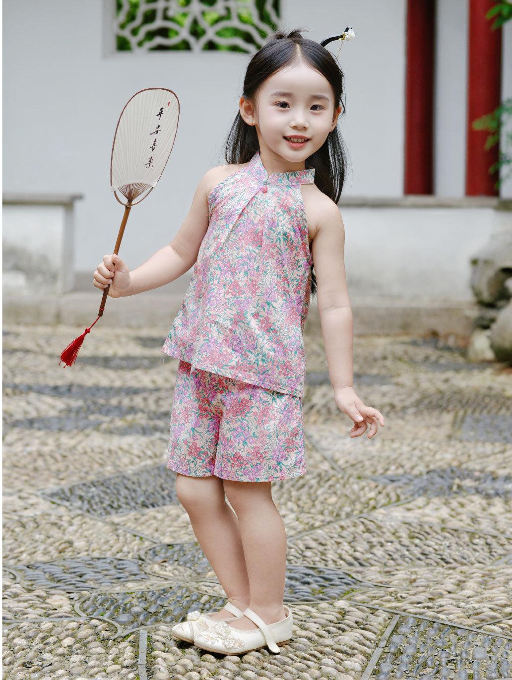 2025 Verano Niñas Retro Floral Bosque Tirantes Moda Niñas Moda Sin Mangas Casual Top Traje