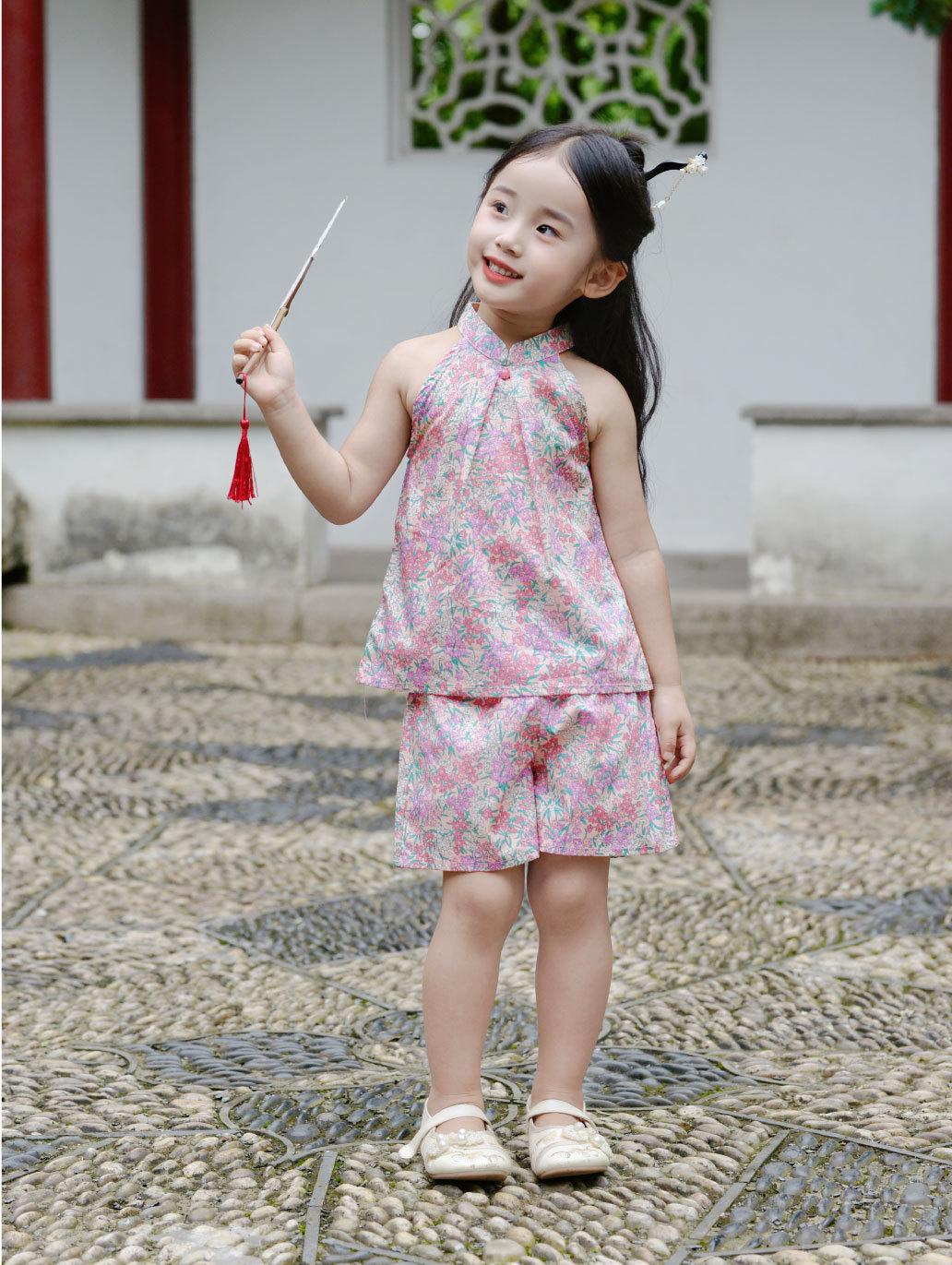 Impatiens Powder Shorts Set, Impatiens Shoulderless Cheongsam Dress
