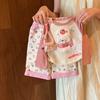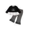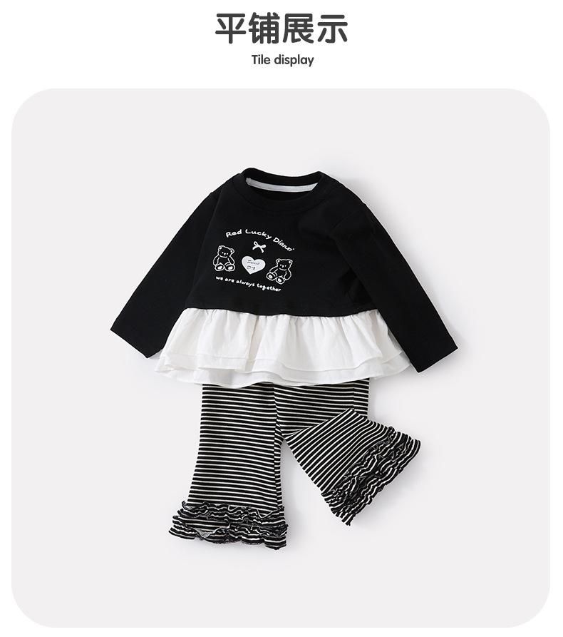 2025 Otoño Nuevo Conjunto de Punto de Moda para Bebés y Niños Pequeños Top de Dos Piezas Falso para Bebé Niña Pantalones a Rayas Conjunto de Dos Piezas