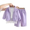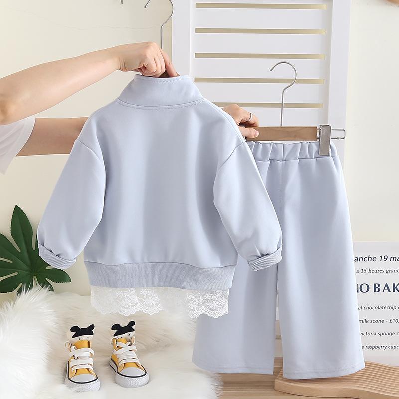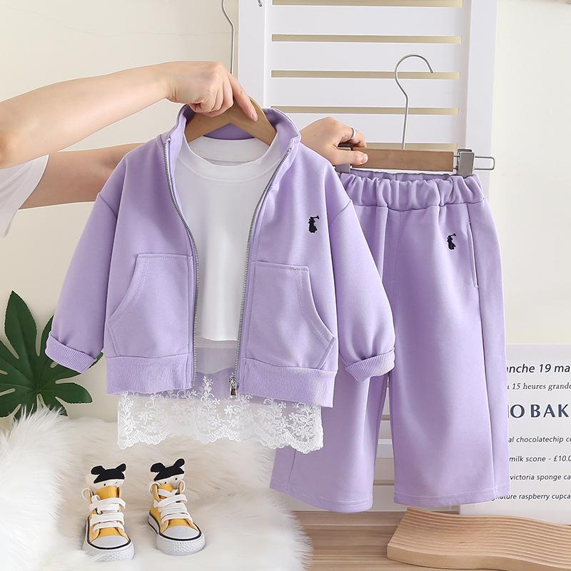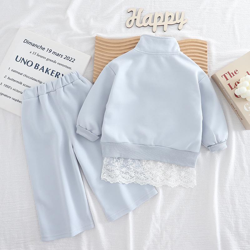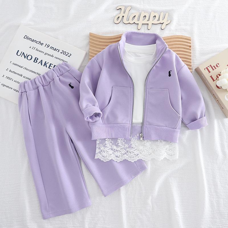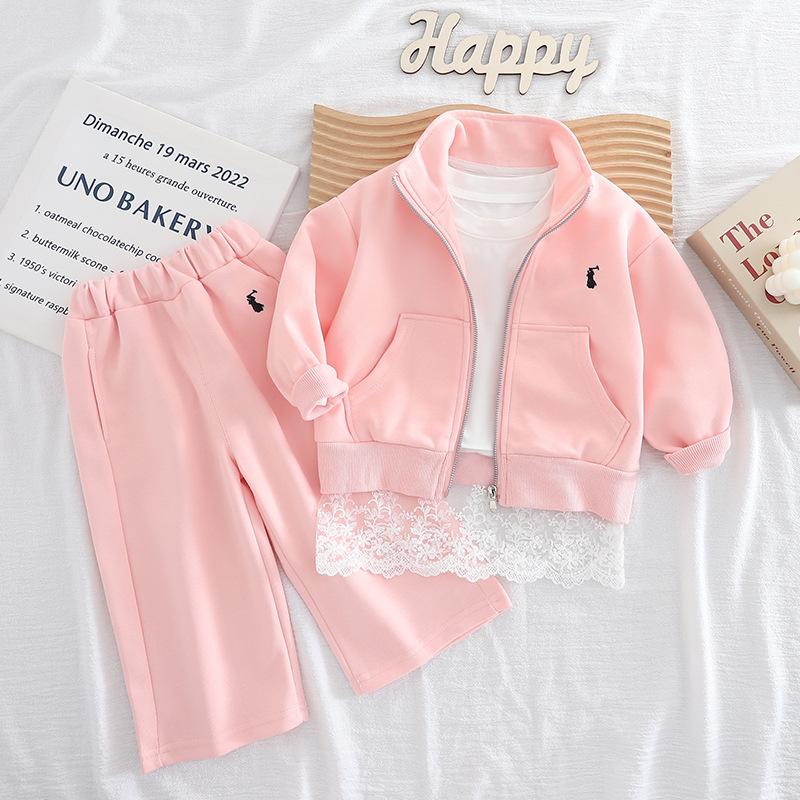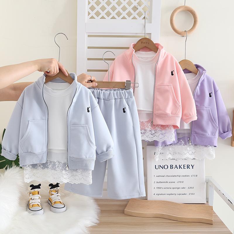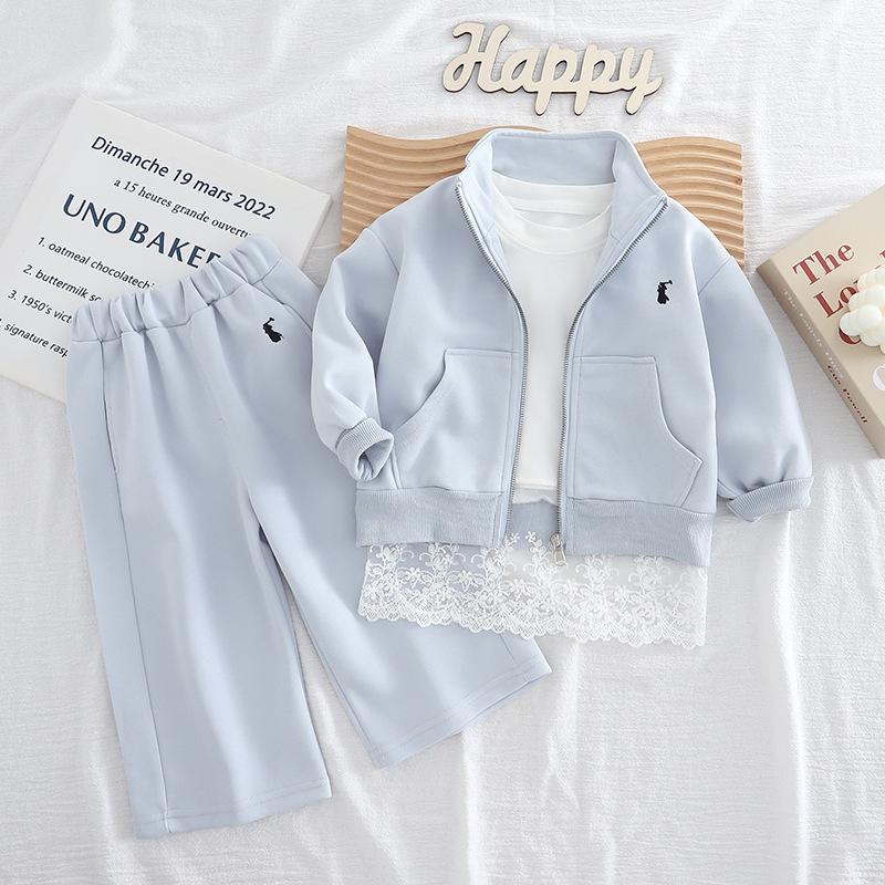 Conjunto de Otoño para Niñas Estilo Coreano Moderno Bebé Falda de Tul Bordado Conjunto de Tres Piezas Primavera y Otoño Ropa Exterior para Niña Infantil