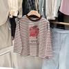 Camiseta de Manga Larga con Bloques de Color de Algodón Puro Estilo Nuevo 2025 Primavera y Otoño Casual Versátil Estampado de Dibujos Animados Holgada Básica Yingshang