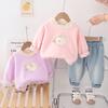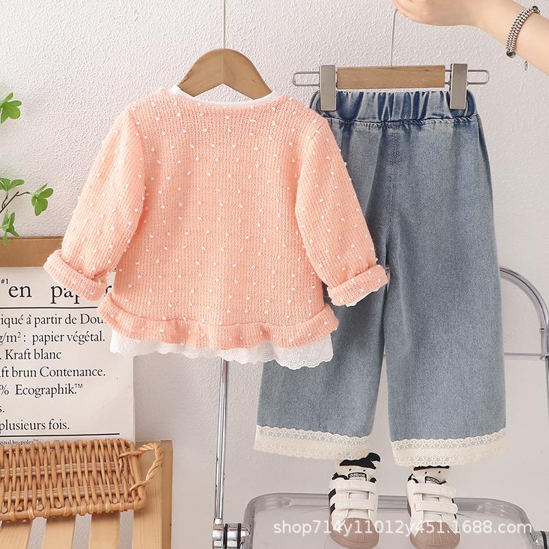 Conjunto de dos piezas de sudadera casual para niña 2025 nuevo moderno con lazo grande, conjunto infantil de moda de otoño para bebé