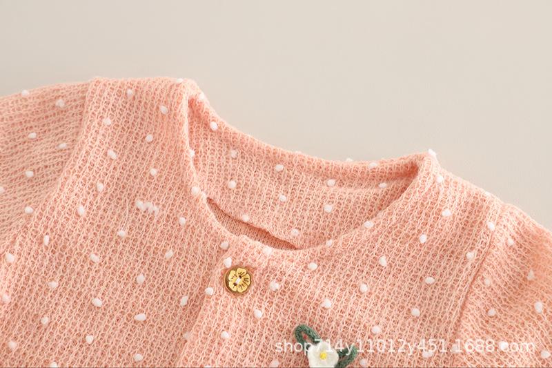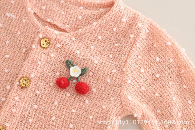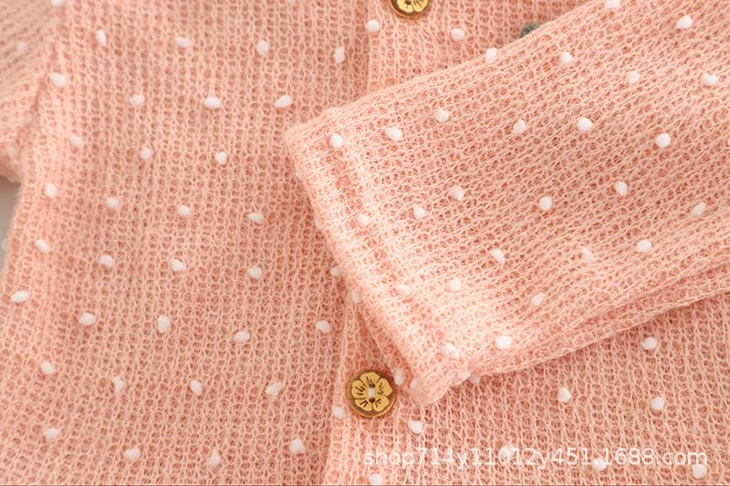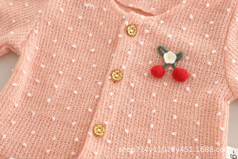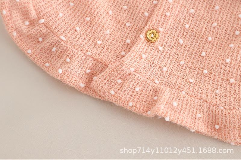 Long Sleeve White Ball Cardigan Three-Piece Set Pink