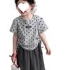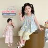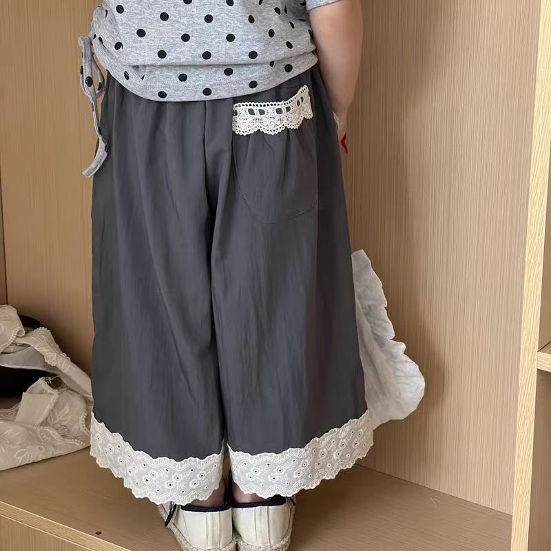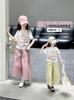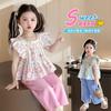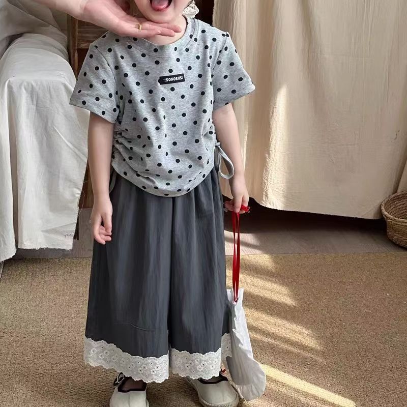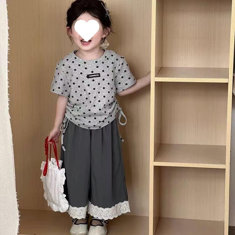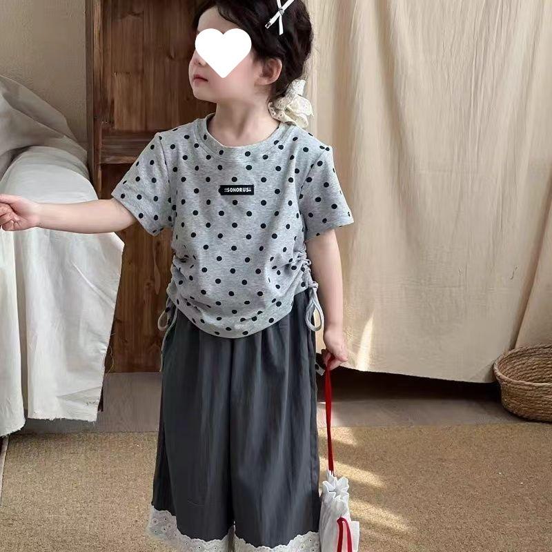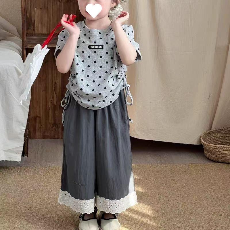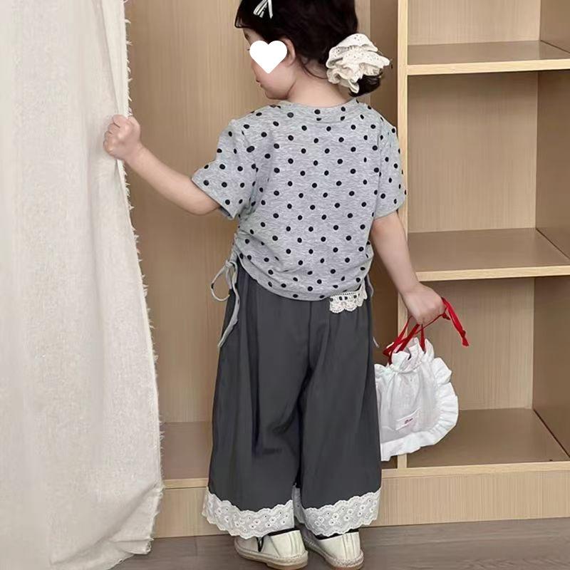 Conjunto de Verano de Manga Corta para Niñas 2025 Nuevo Estilo Top de Manga Corta Versátil con Encaje Pantalones Rectos de Pierna Ancha Conjunto de Dos Piezas de Verano para Niños