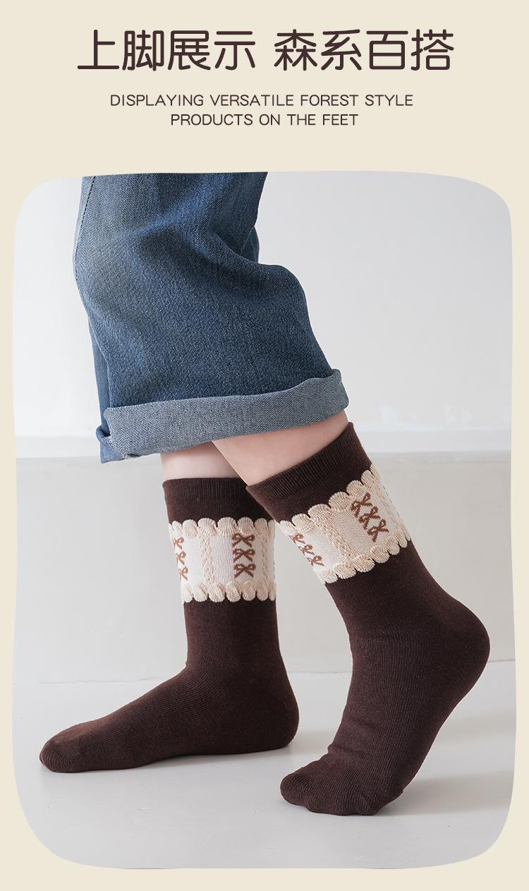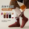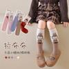 Calcetines para Niñas Color Caqui Oso Hasta la Rodilla Calcetines de Dibujos Animados Retro Otoño e Invierno Media Pantorrilla Calcetines Lindos de Algodón para Bebé