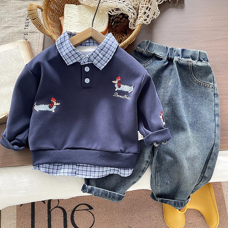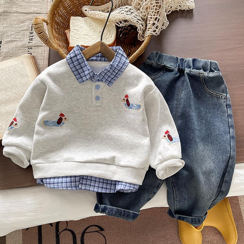 Ropa para Niños Primavera y Otoño Tops Lindos para Niños Ropa de Otoño para Bebé Sudadera 2025 Estilo Coreano Nuevo Conjunto de Niño Dos Piezas