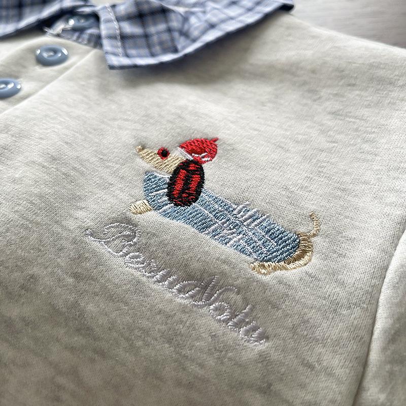 Gray (Sausage + P-label denim), Navy blue (Sausage + P-label denim), 【Purple Shirt + P Logo】 Set, Fart standard denim