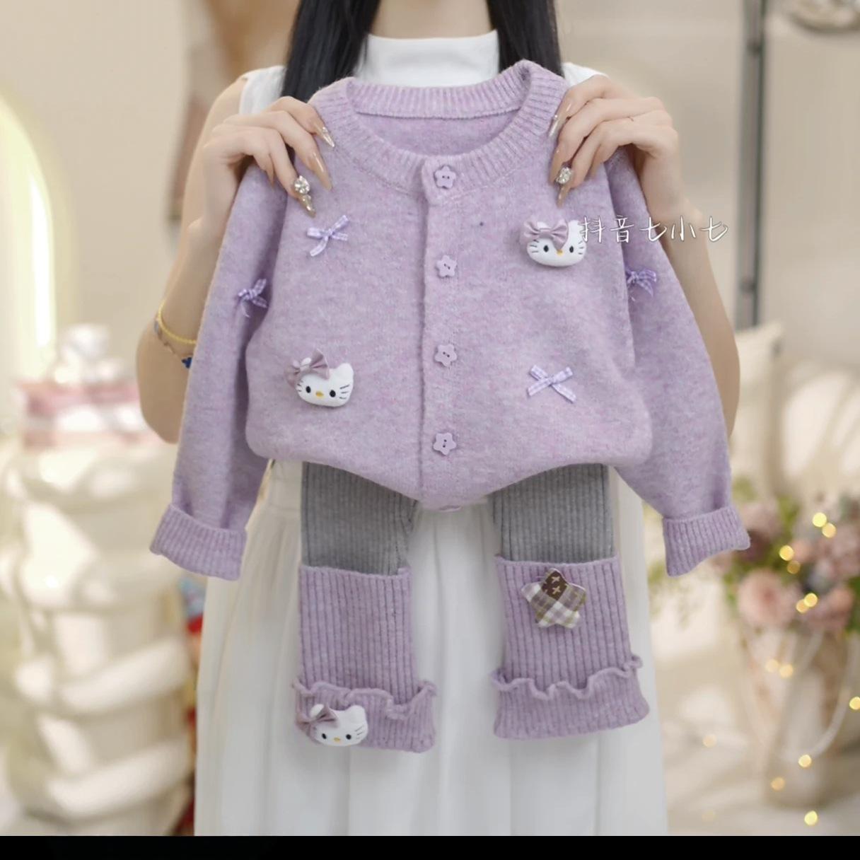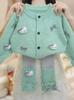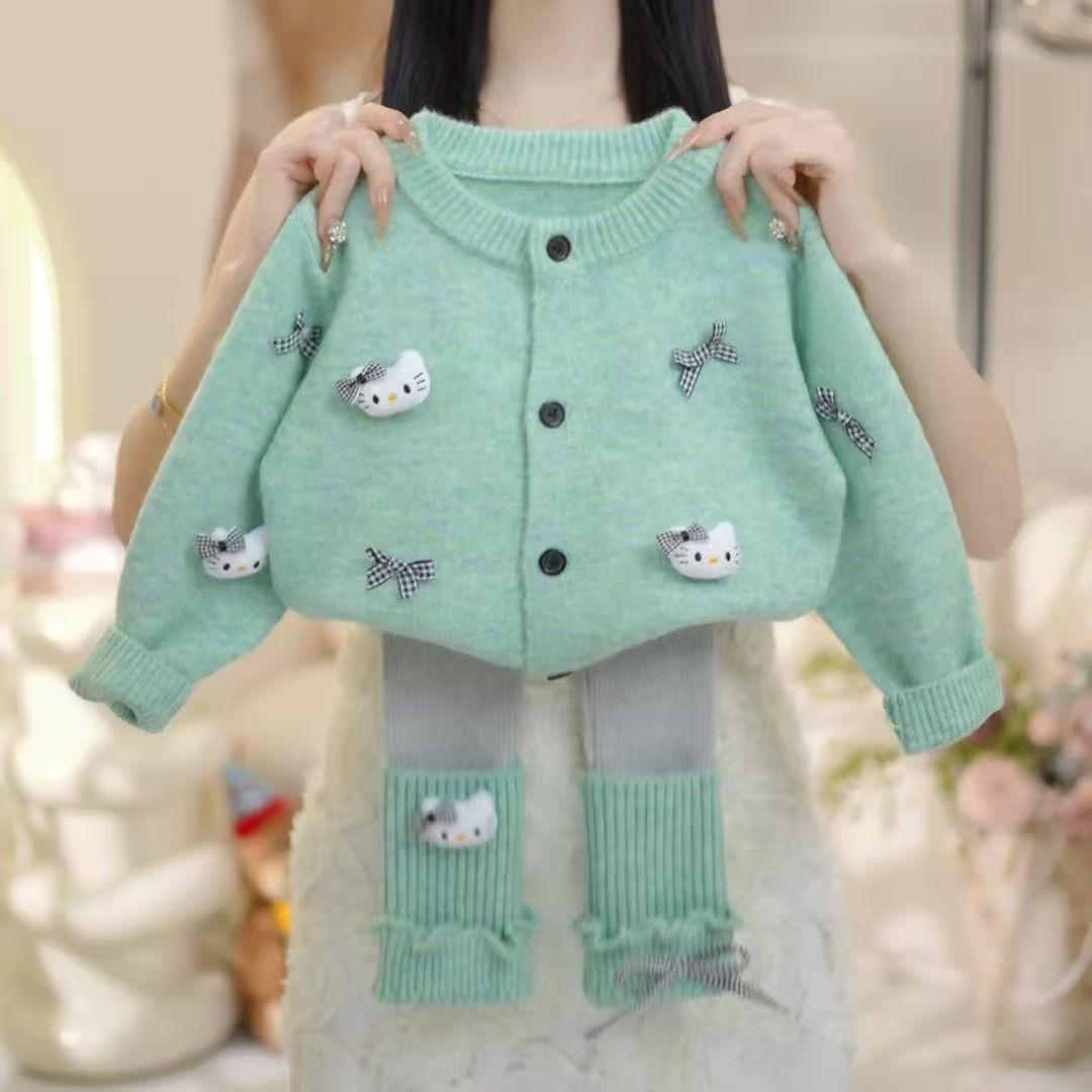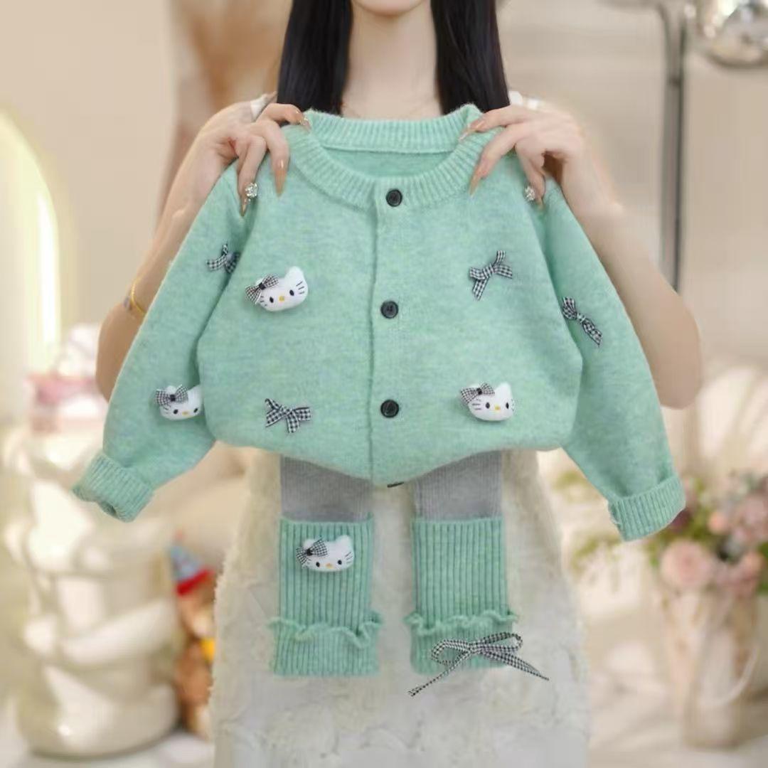 Conjunto de Cárdigan para Niñas Primavera Otoño 2025 Nuevo Ropa de Otoño Infantil de Dibujos Animados Leggings de Punto para Niña Conjunto de Dos Piezas