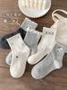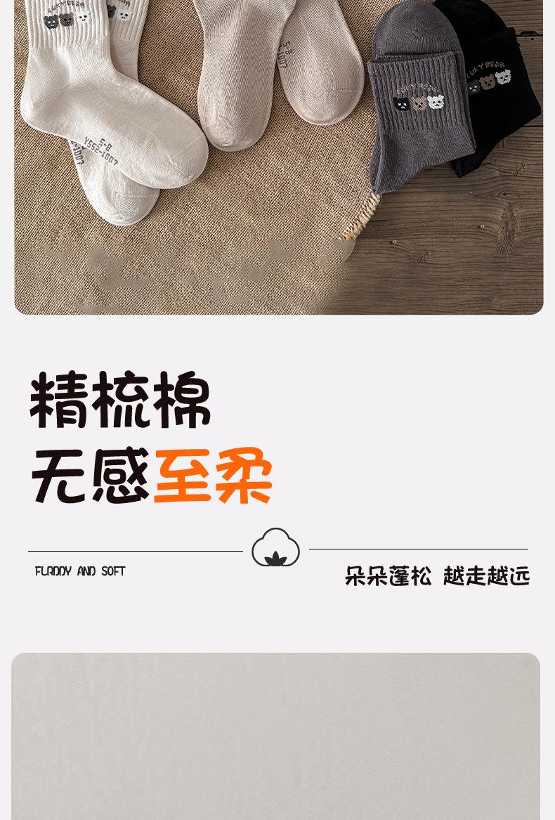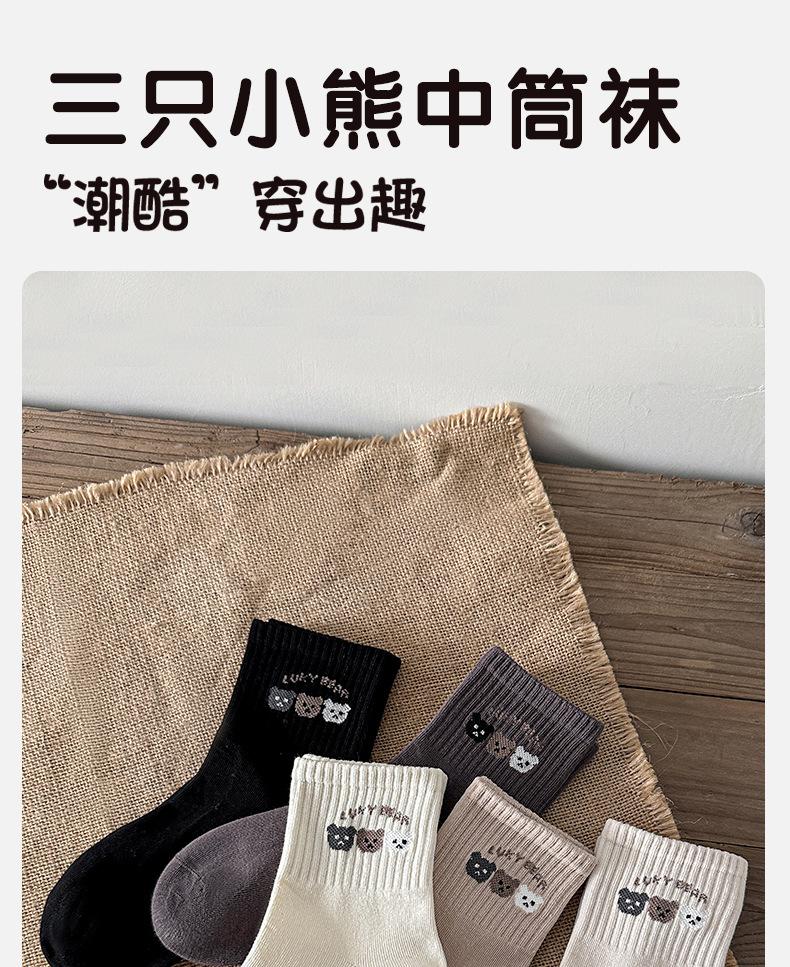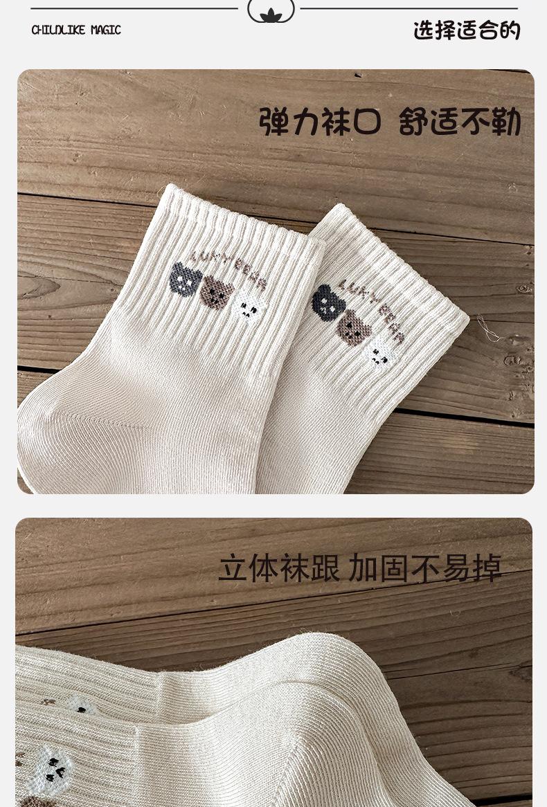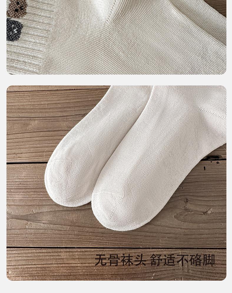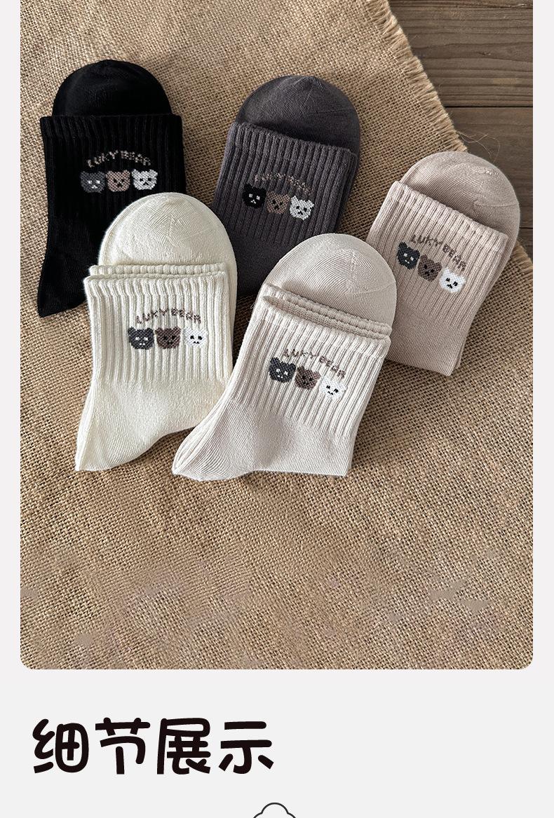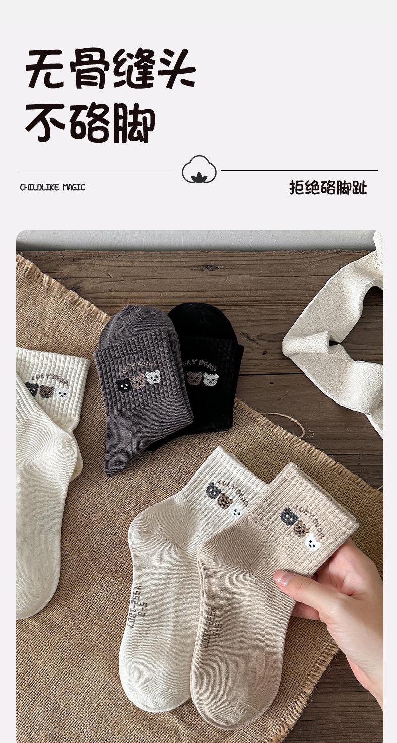 Otoño/Invierno 2025 Nuevos Calcetines de Niña Algodón Sin Costuras Calcetines de Media Caña para Niños Estilo Coreano Encaje Niños Grandes Niños Osito