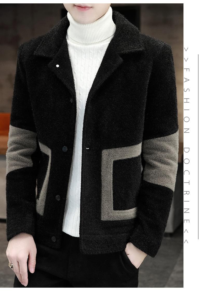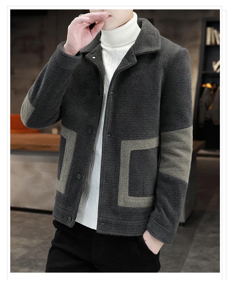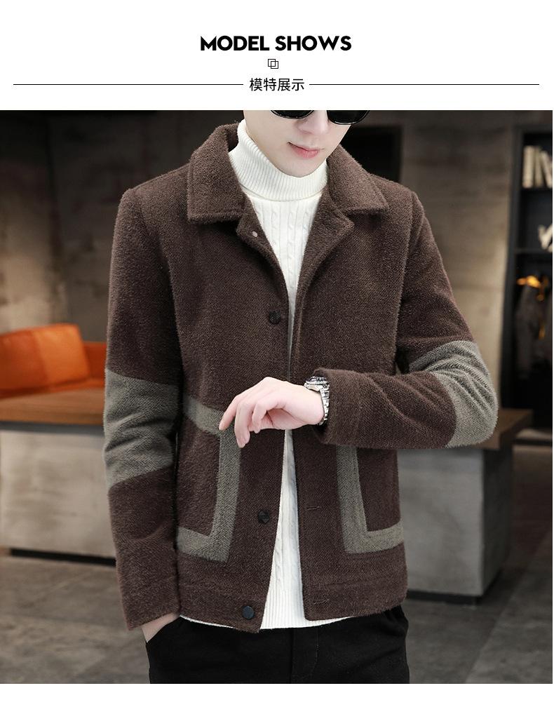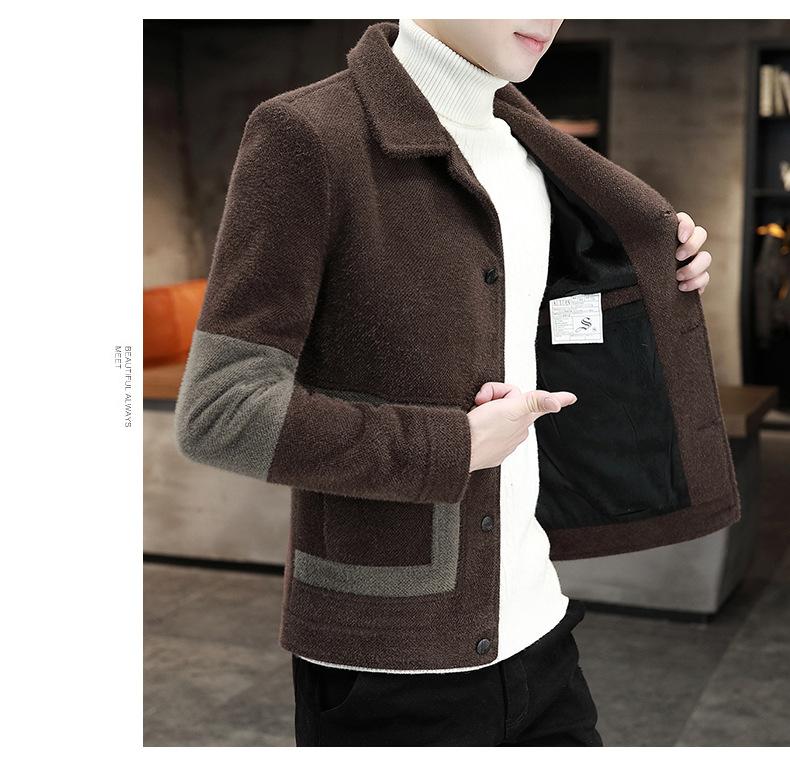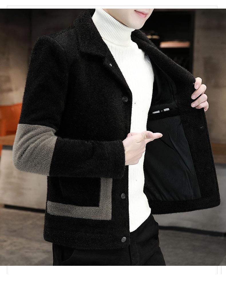 Abrigo de Lana con Solapa Otoño Abrigo Corto para Hombre Moda Coreana Chaqueta de Visón Dorado Guapo Top para Hombre Otoño e Invierno