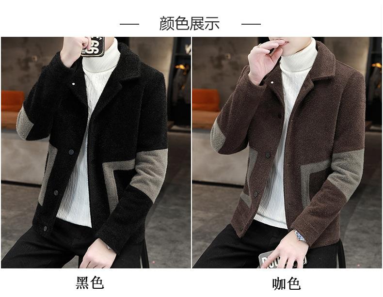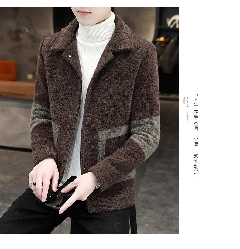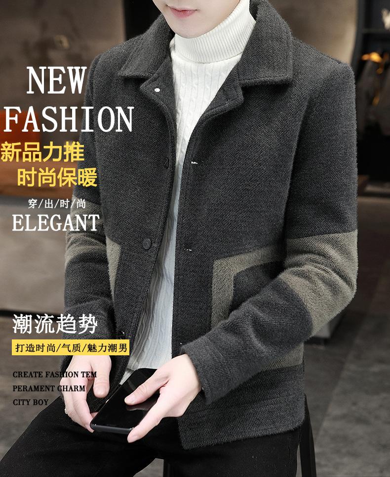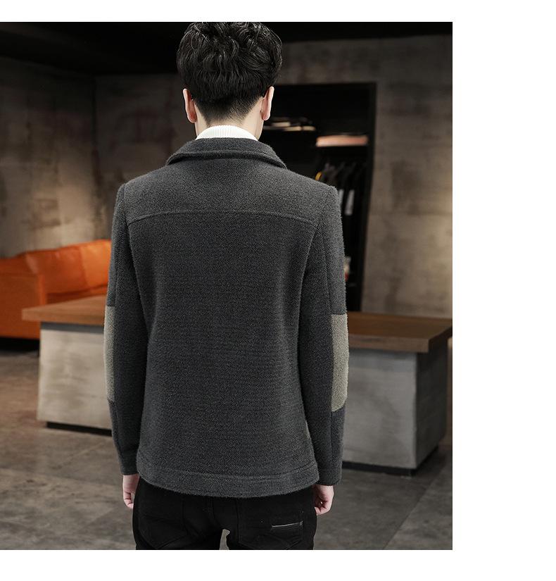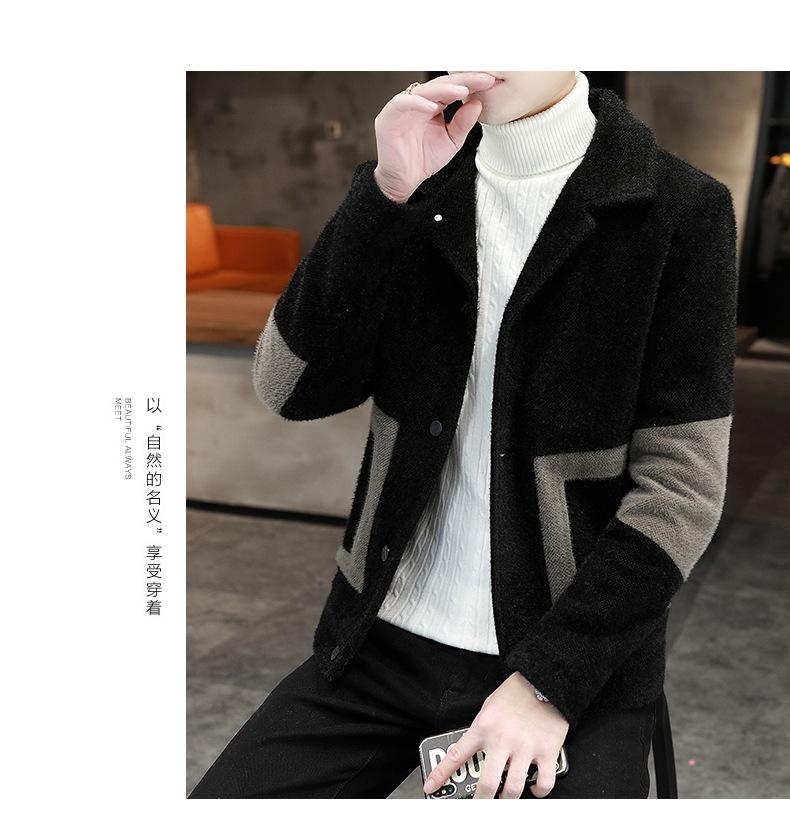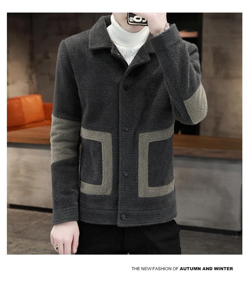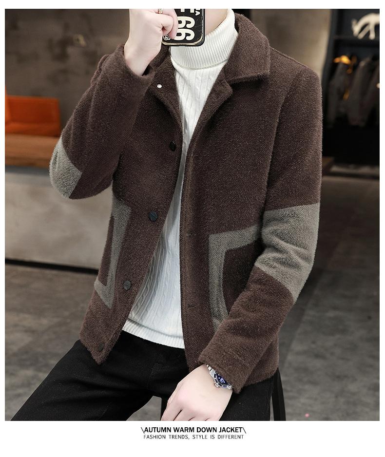 Abrigo de Lana con Solapa Otoño Abrigo Corto para Hombre Moda Coreana Chaqueta de Visón Dorado Guapo Top para Hombre Otoño e Invierno