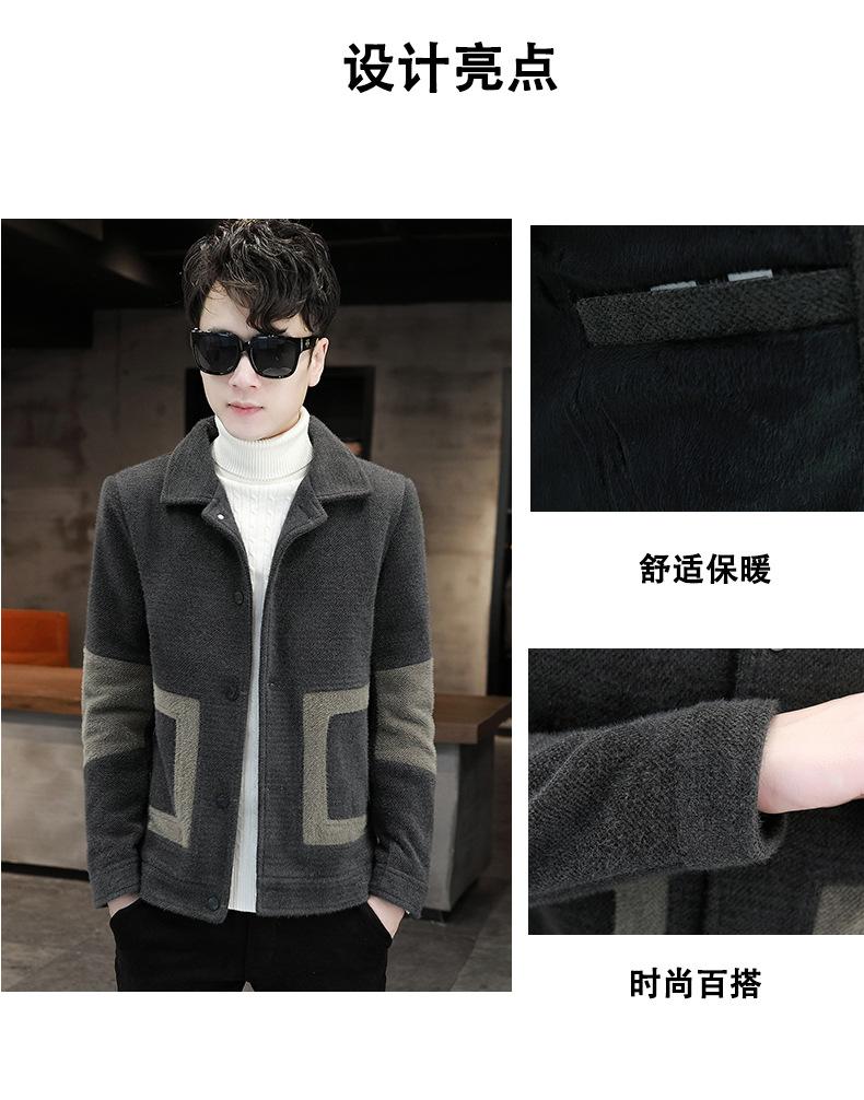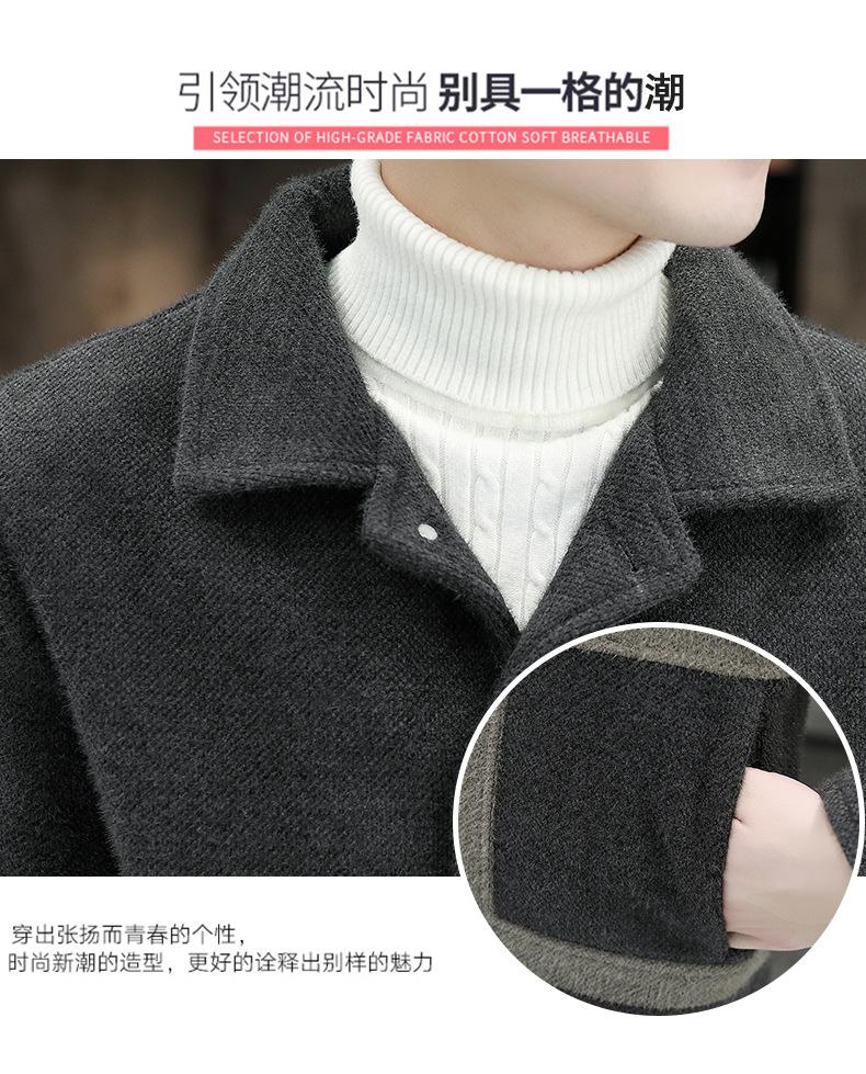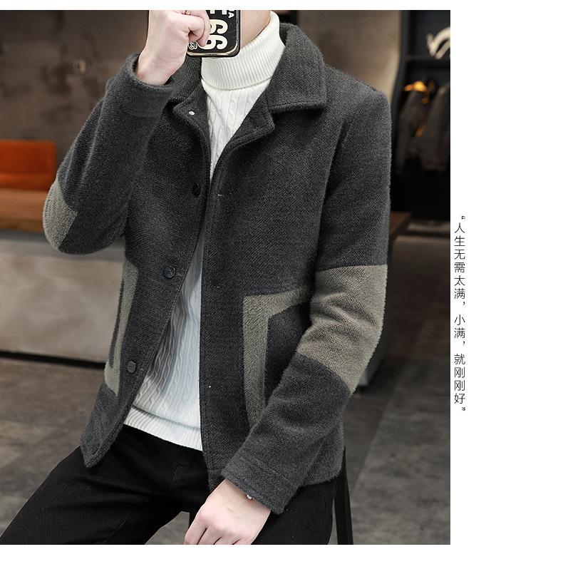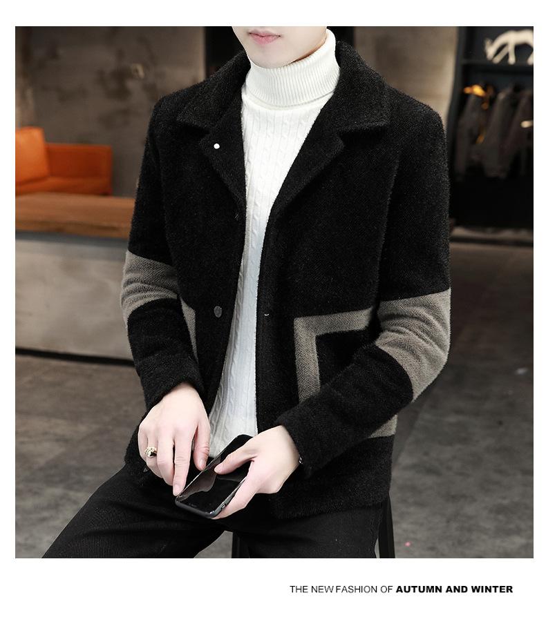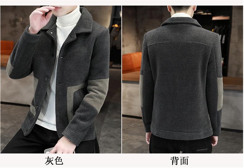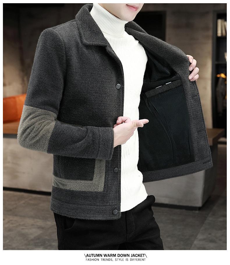 Abrigo de Lana con Solapa Otoño Abrigo Corto para Hombre Moda Coreana Chaqueta de Visón Dorado Guapo Top para Hombre Otoño e Invierno