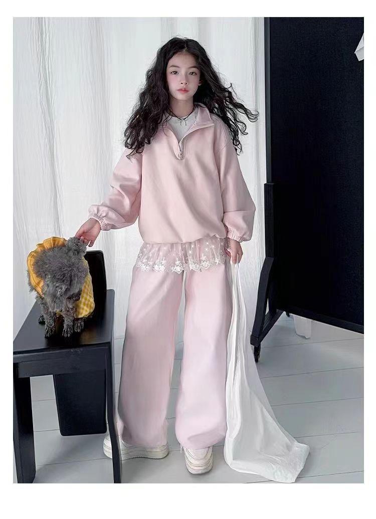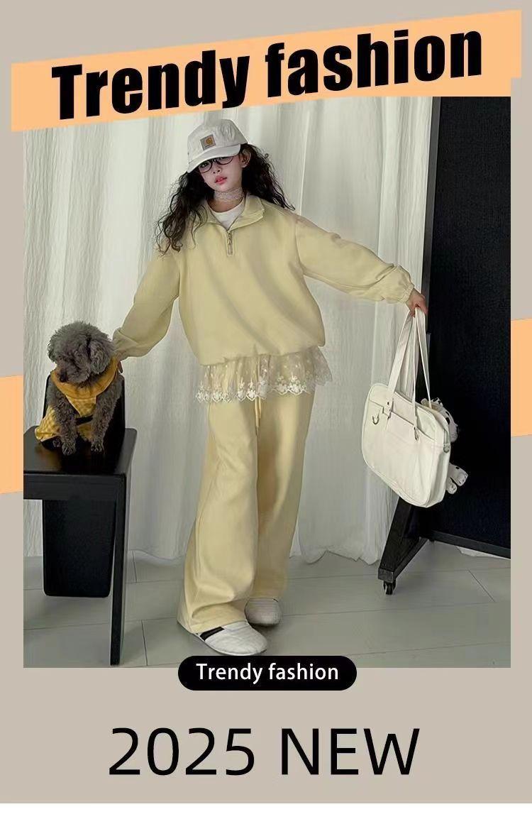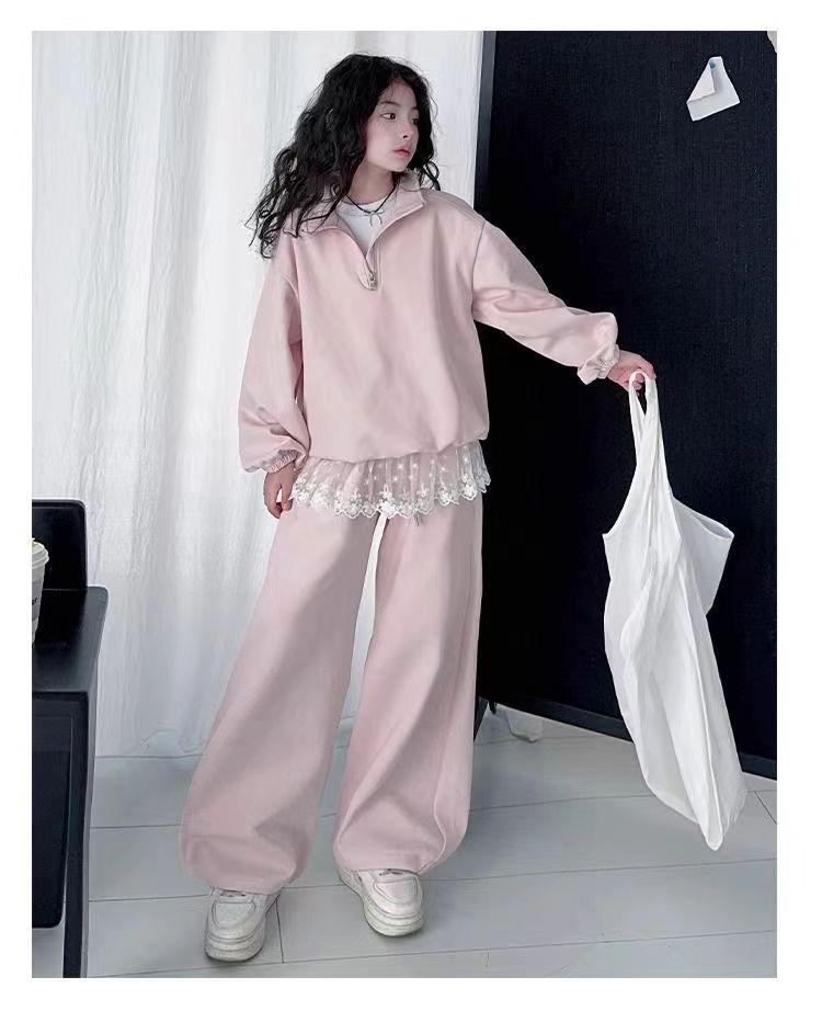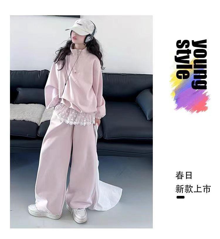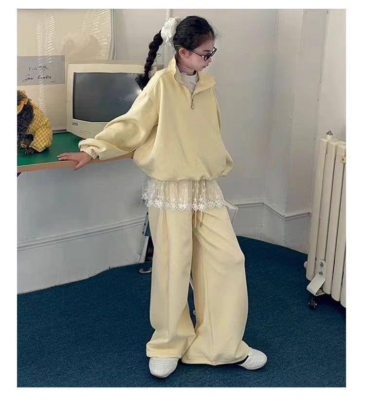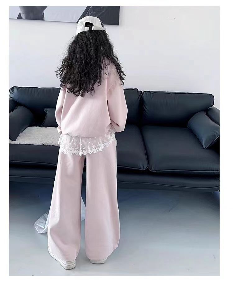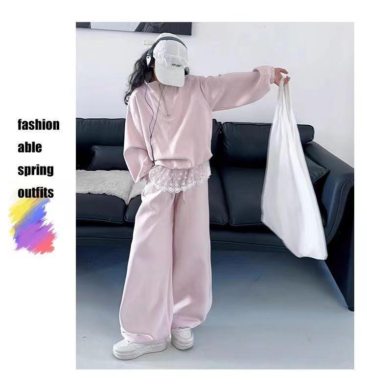 Conjunto de Primavera y Otoño para Niñas 2025 Nuevo Sudadera de Encaje Moderna y Elegante para Niños Estudiantes de Secundaria Ropa Deportiva Casual de Primavera