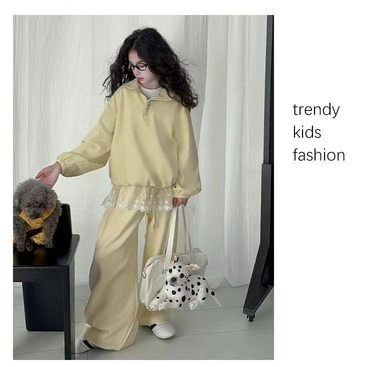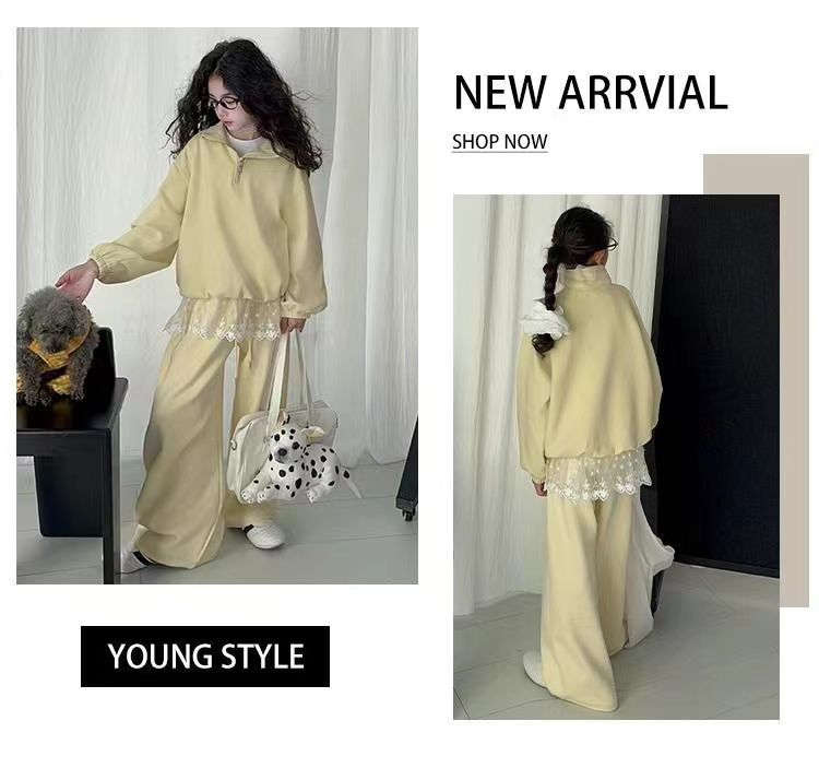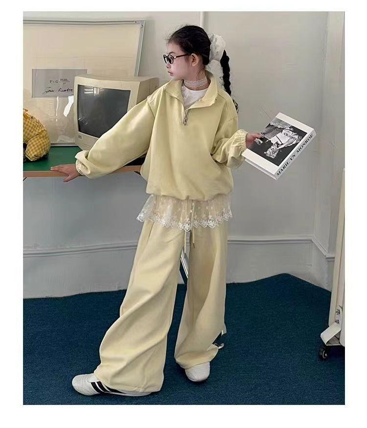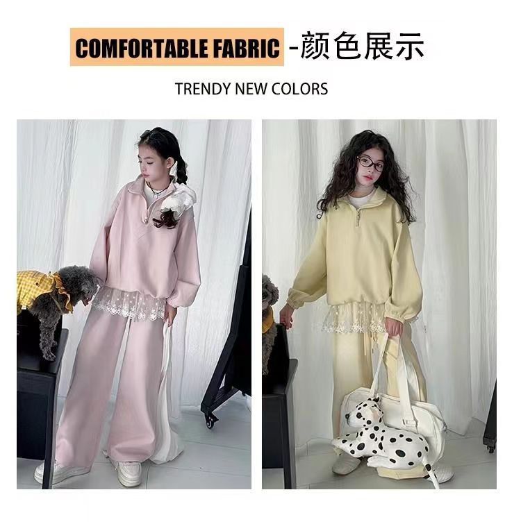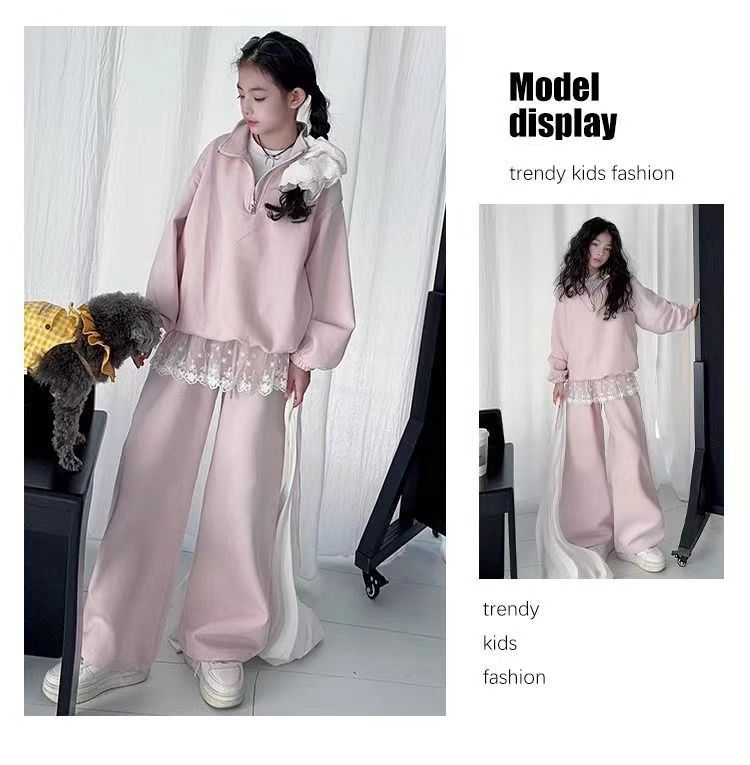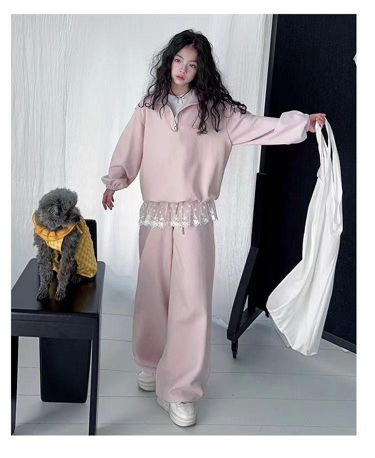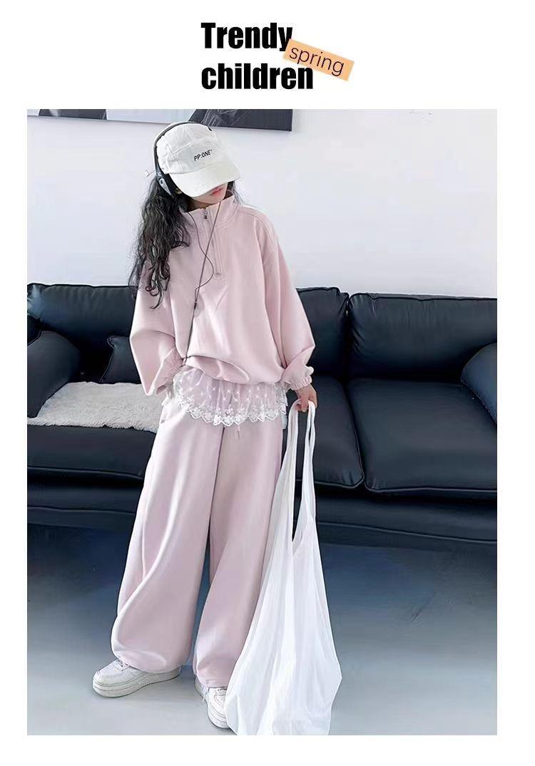 Conjunto de Primavera y Otoño para Niñas 2025 Nuevo Sudadera de Encaje Moderna y Elegante para Niños Estudiantes de Secundaria Ropa Deportiva Casual de Primavera