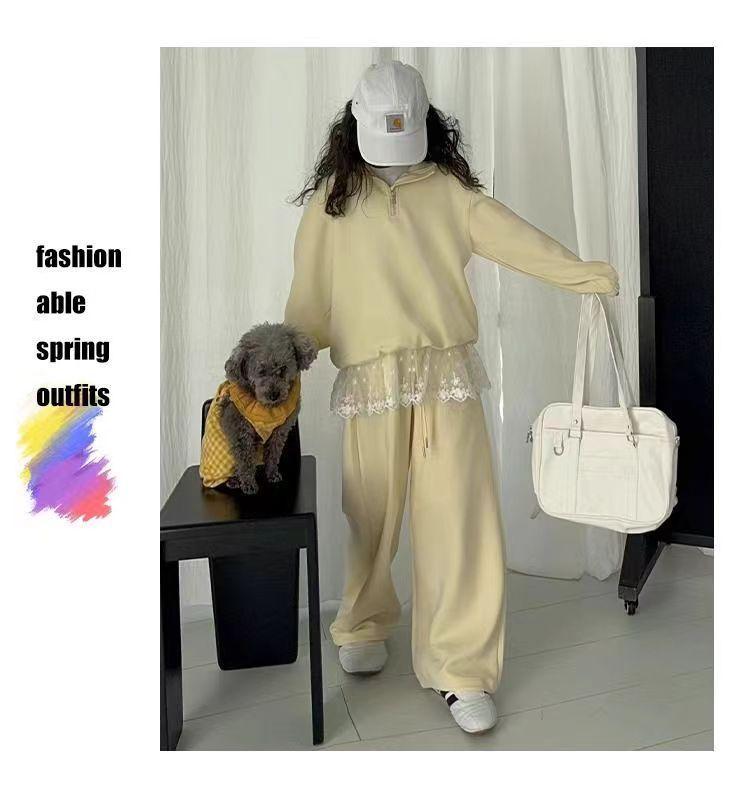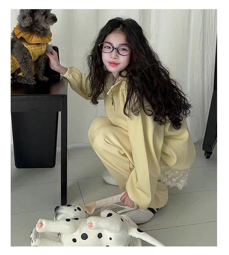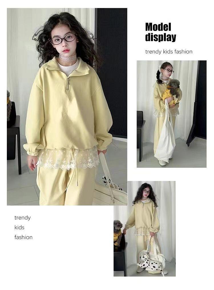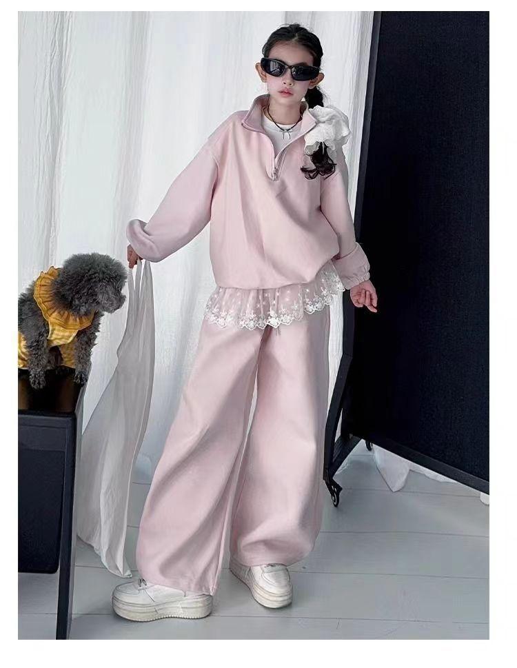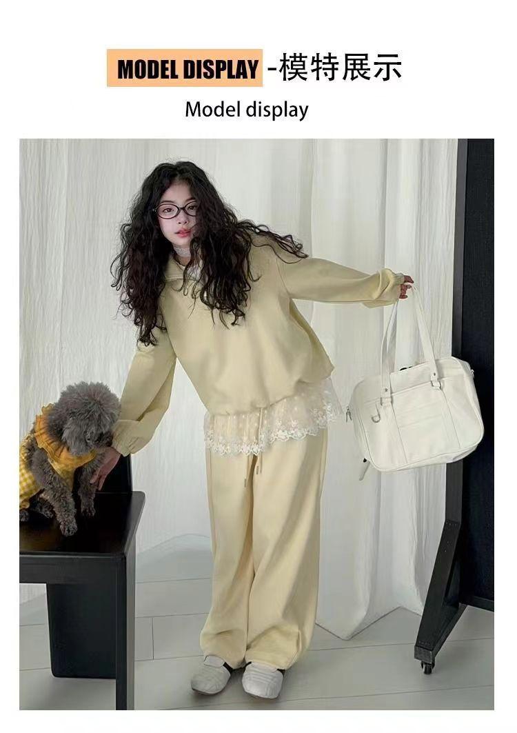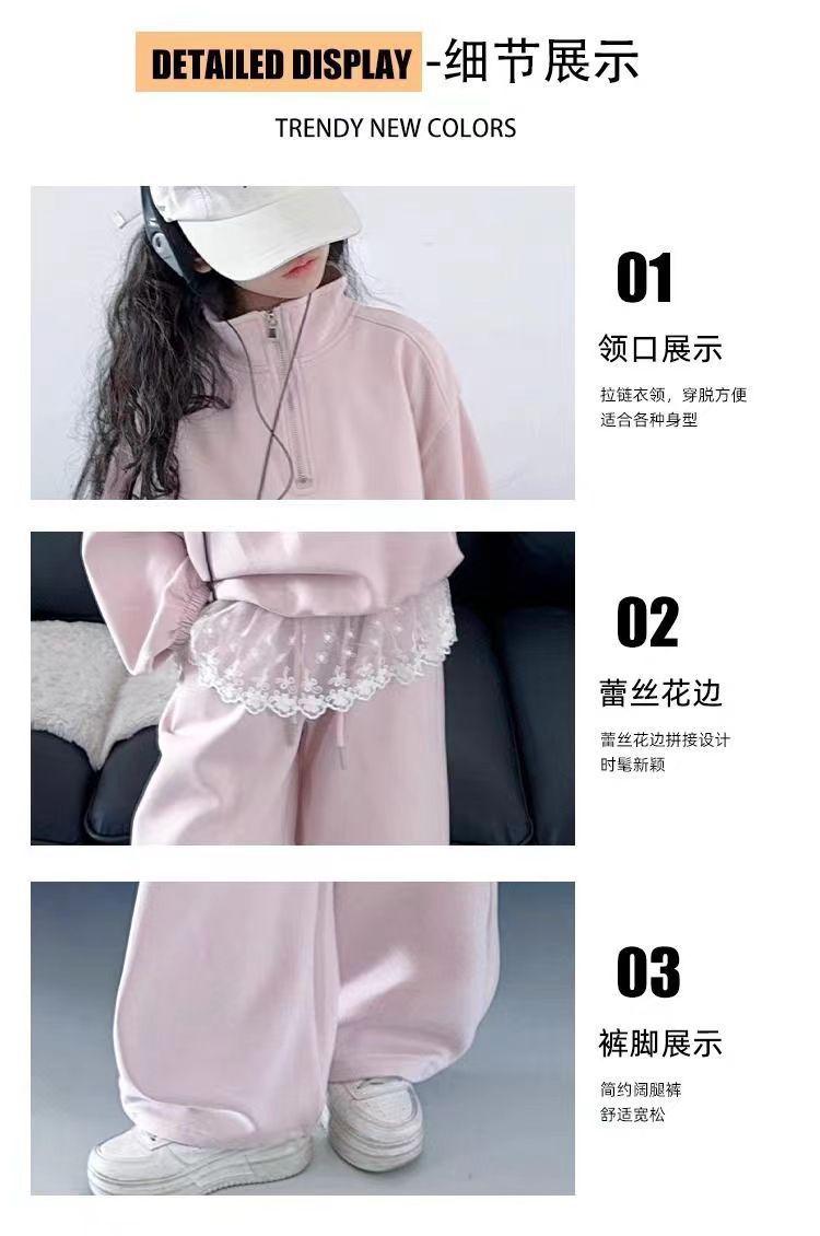 Conjunto de Primavera y Otoño para Niñas 2025 Nuevo Sudadera de Encaje Moderna y Elegante para Niños Estudiantes de Secundaria Ropa Deportiva Casual de Primavera