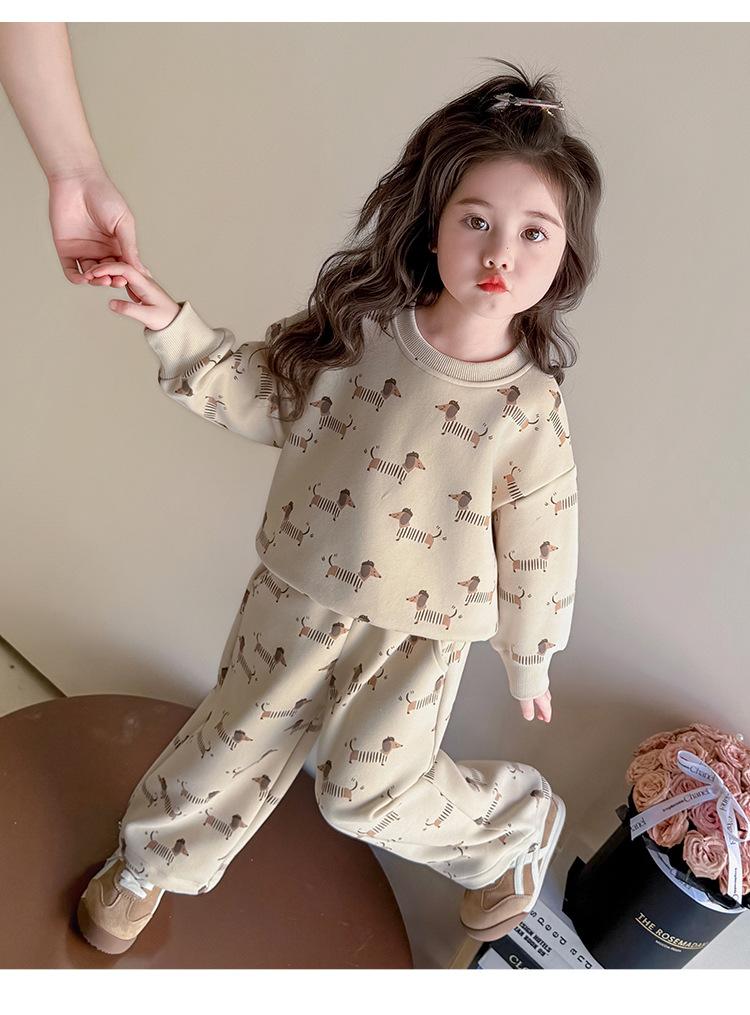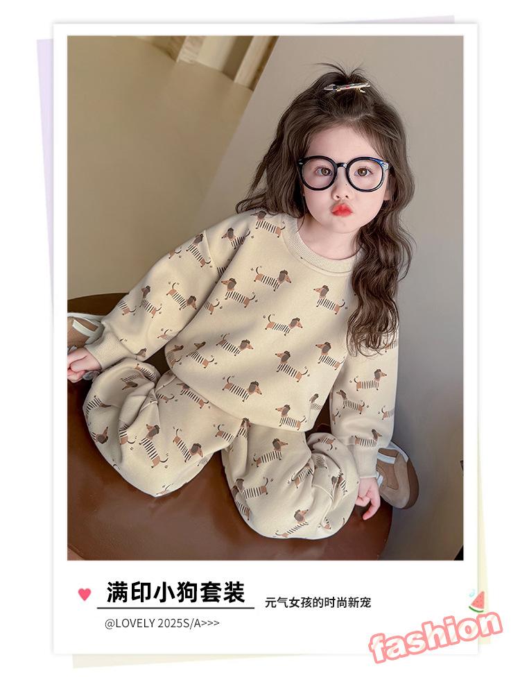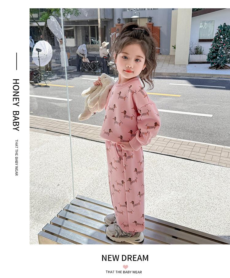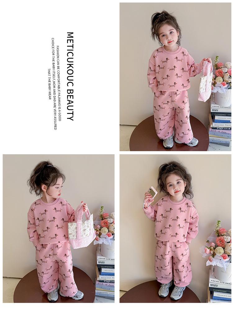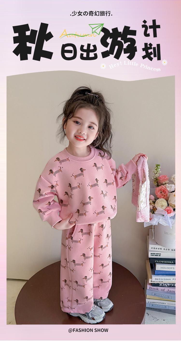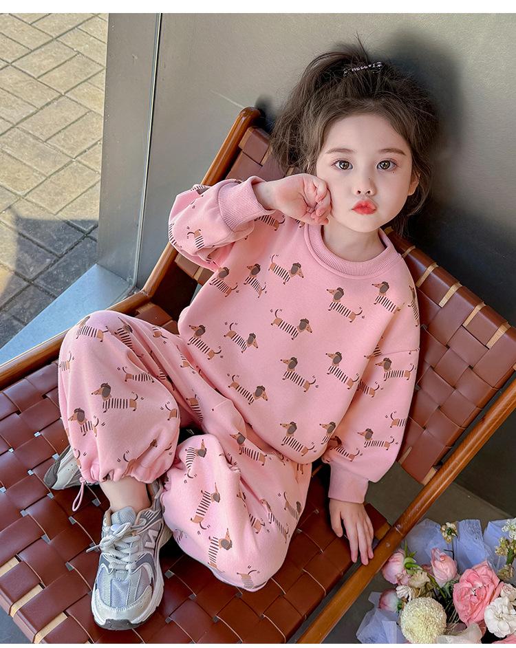 Conjunto para Niñas Otoño 2025 Nuevo Dibujo Animado Moderno Sudadera Pantalón Otoño Primavera Conjunto de Dos Piezas para Niños Trendy