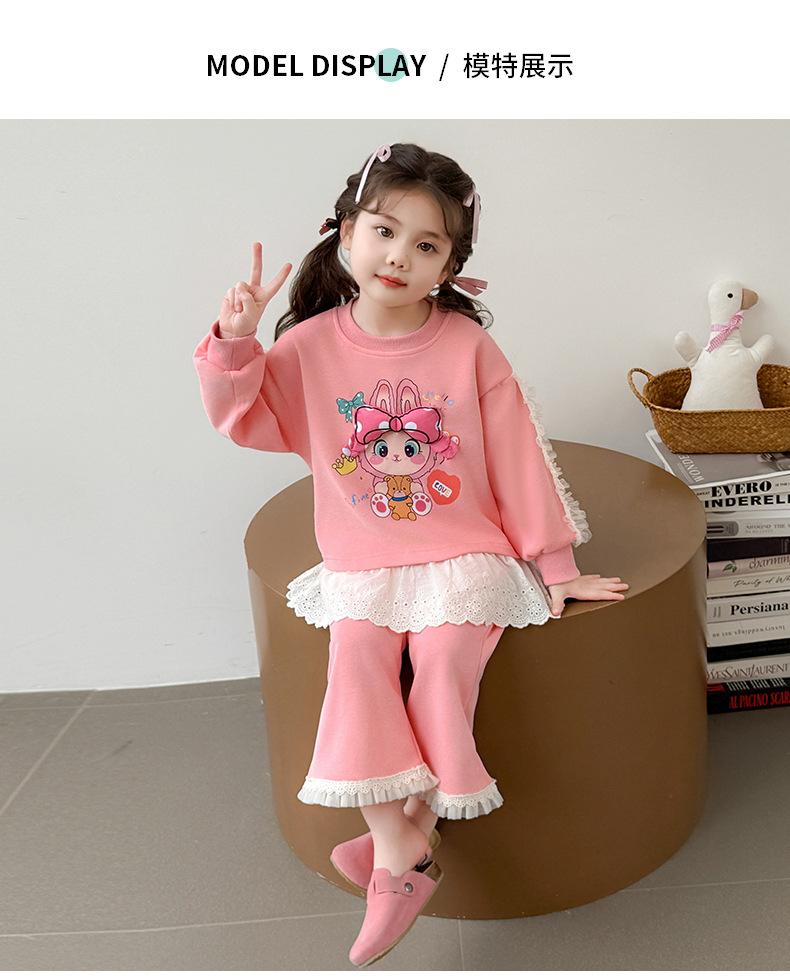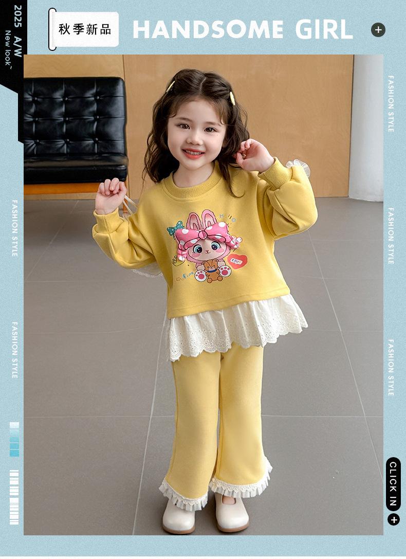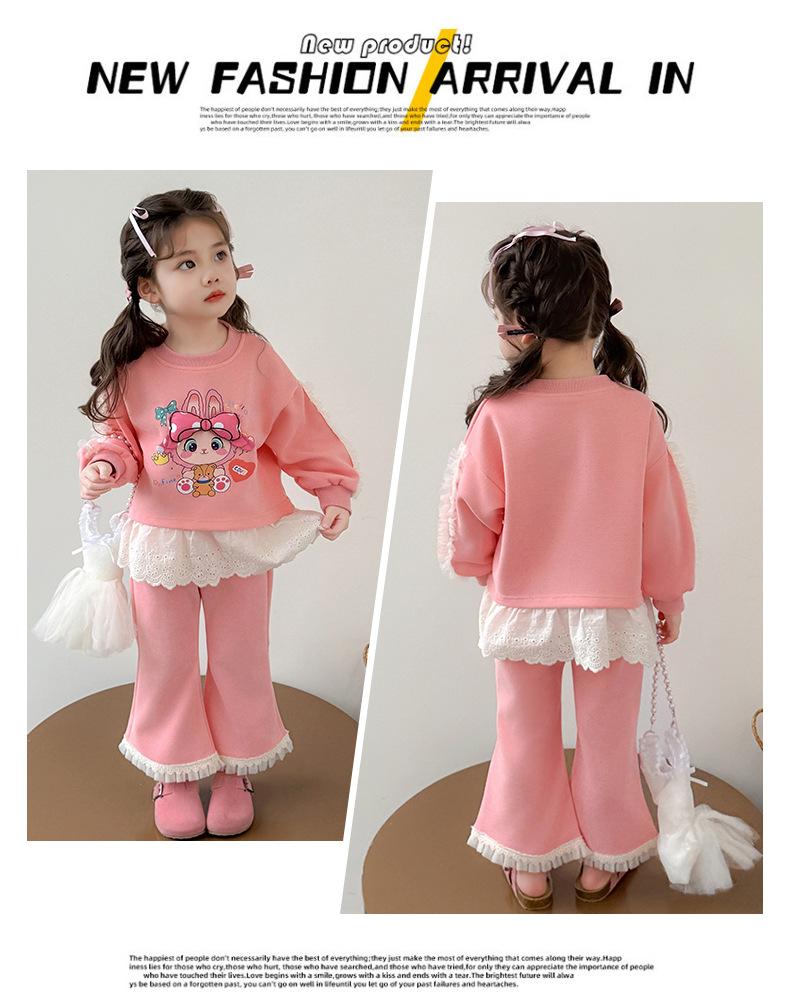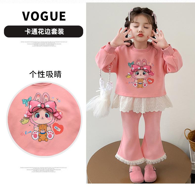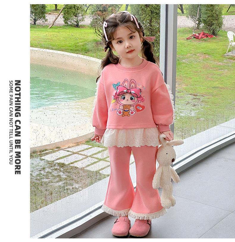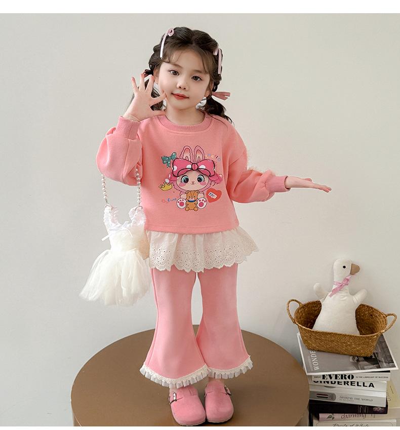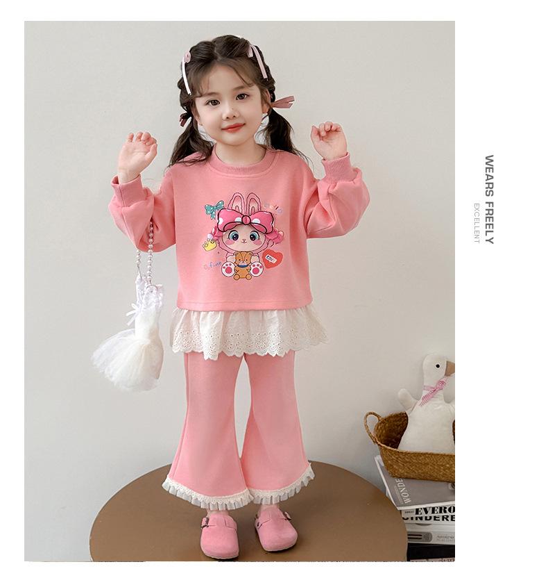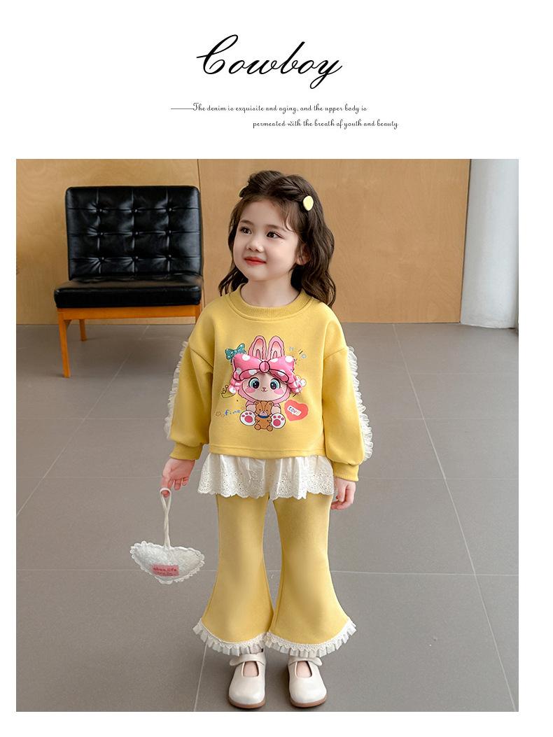 Sudadera de Encaje de Dibujos Animados para Niñas Otoño 2025 Nuevo Estilo Conjunto Dulce y Elegante para Bebé Niña Pantalones Acampanados para Niños Ropa de Otoño