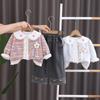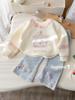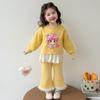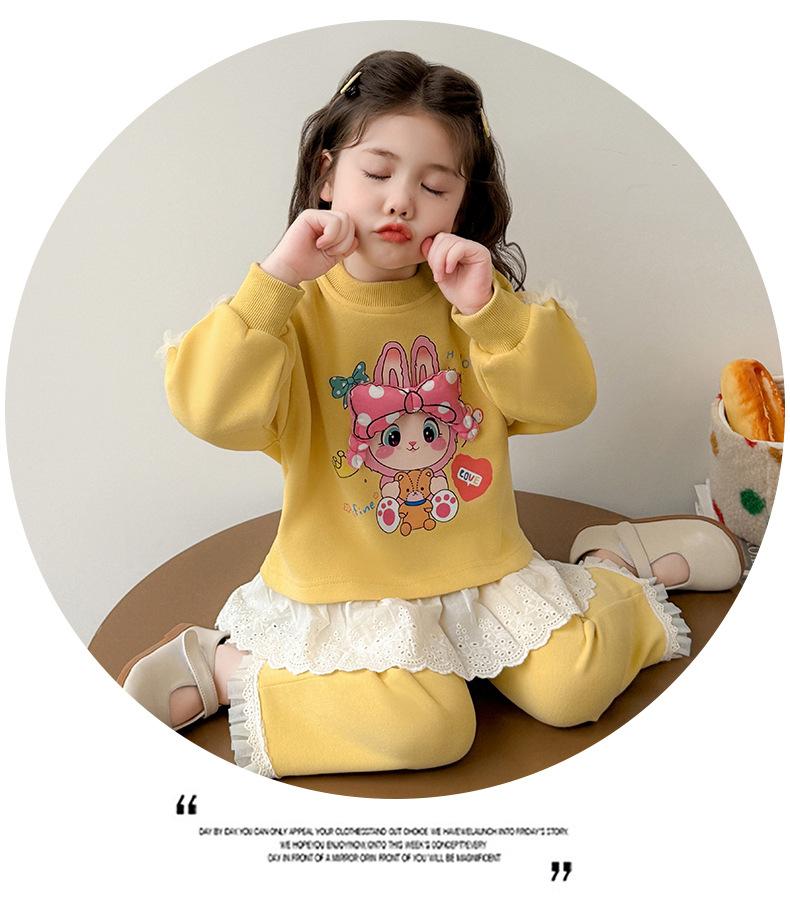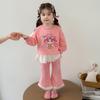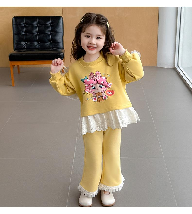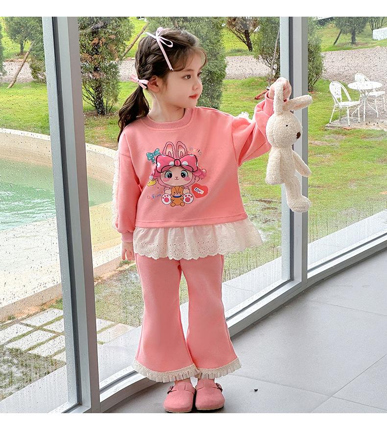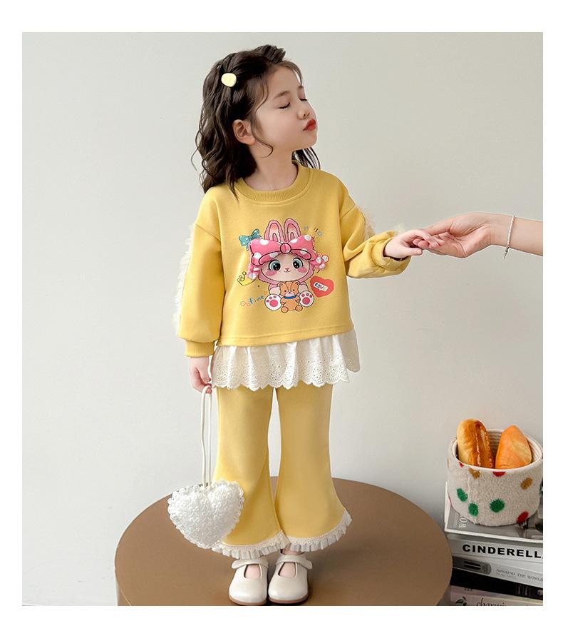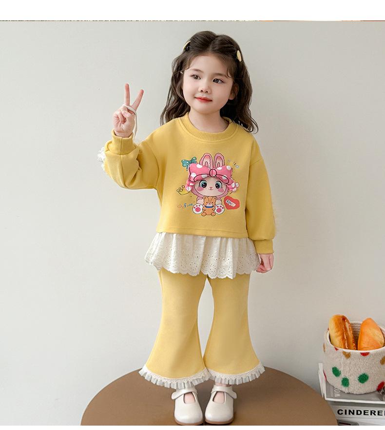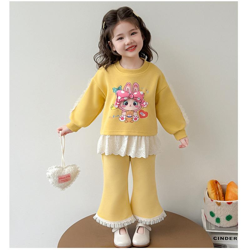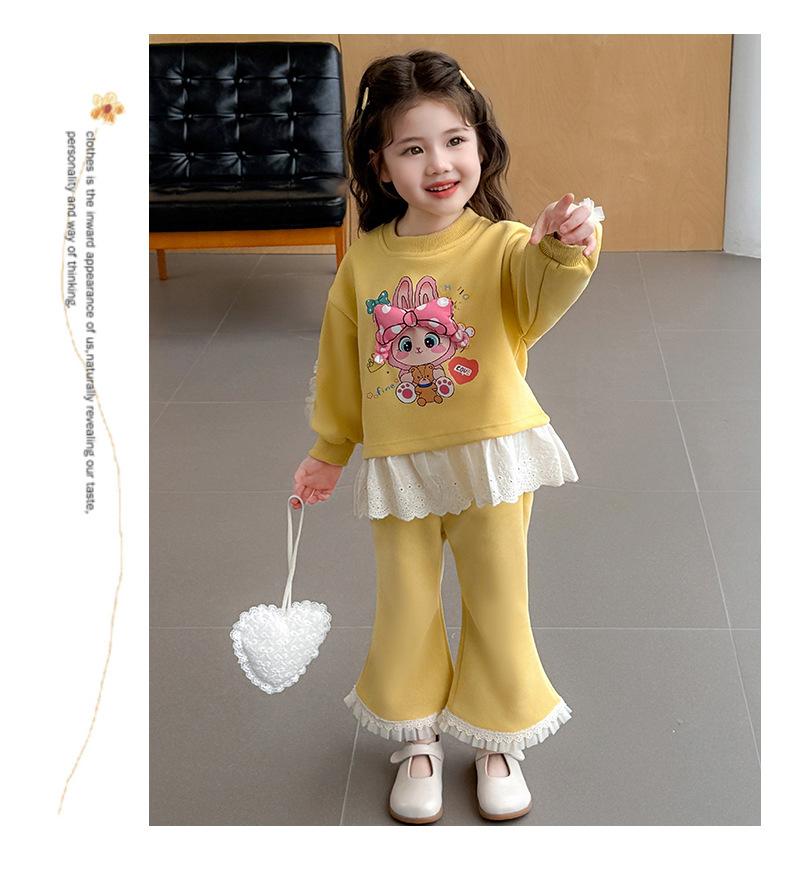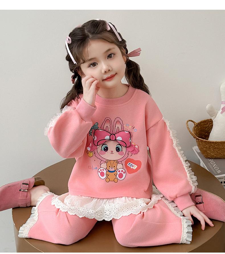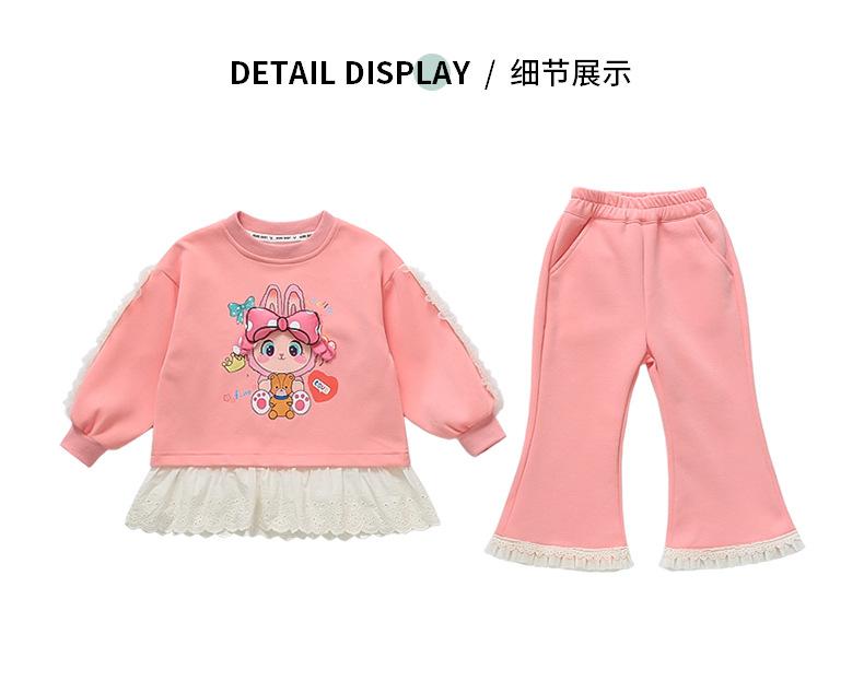 Sudadera de Encaje de Dibujos Animados para Niñas Otoño 2025 Nuevo Estilo Conjunto Dulce y Elegante para Bebé Niña Pantalones Acampanados para Niños Ropa de Otoño