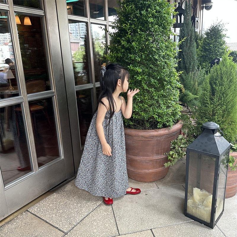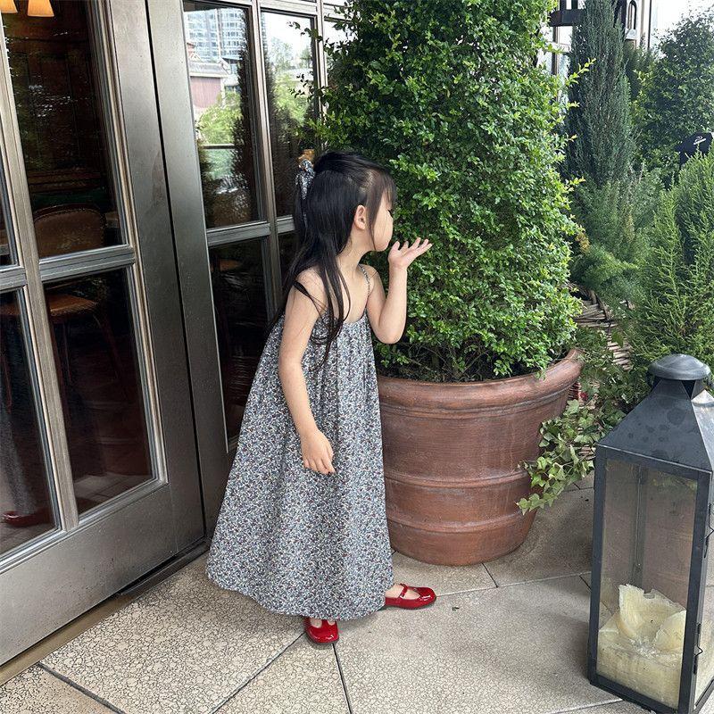 Vestido de Verano para Niñas Moda Bebé Infantil Personalidad Tendencia Marca Estilo Coreano Floral Espalda Descubierta Playa Princesa Tirantes