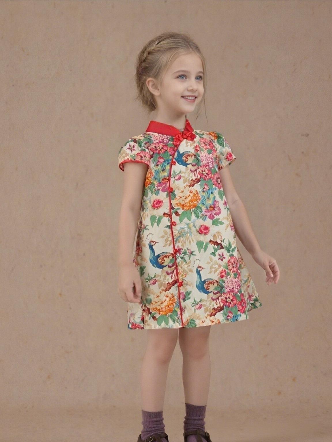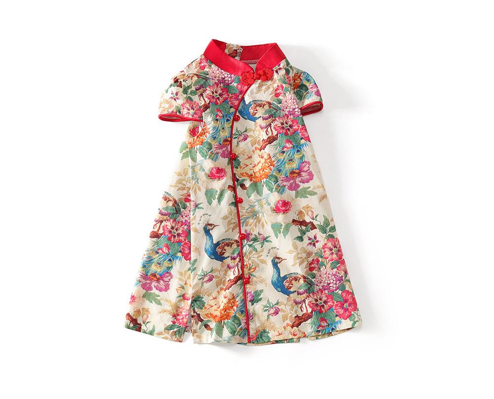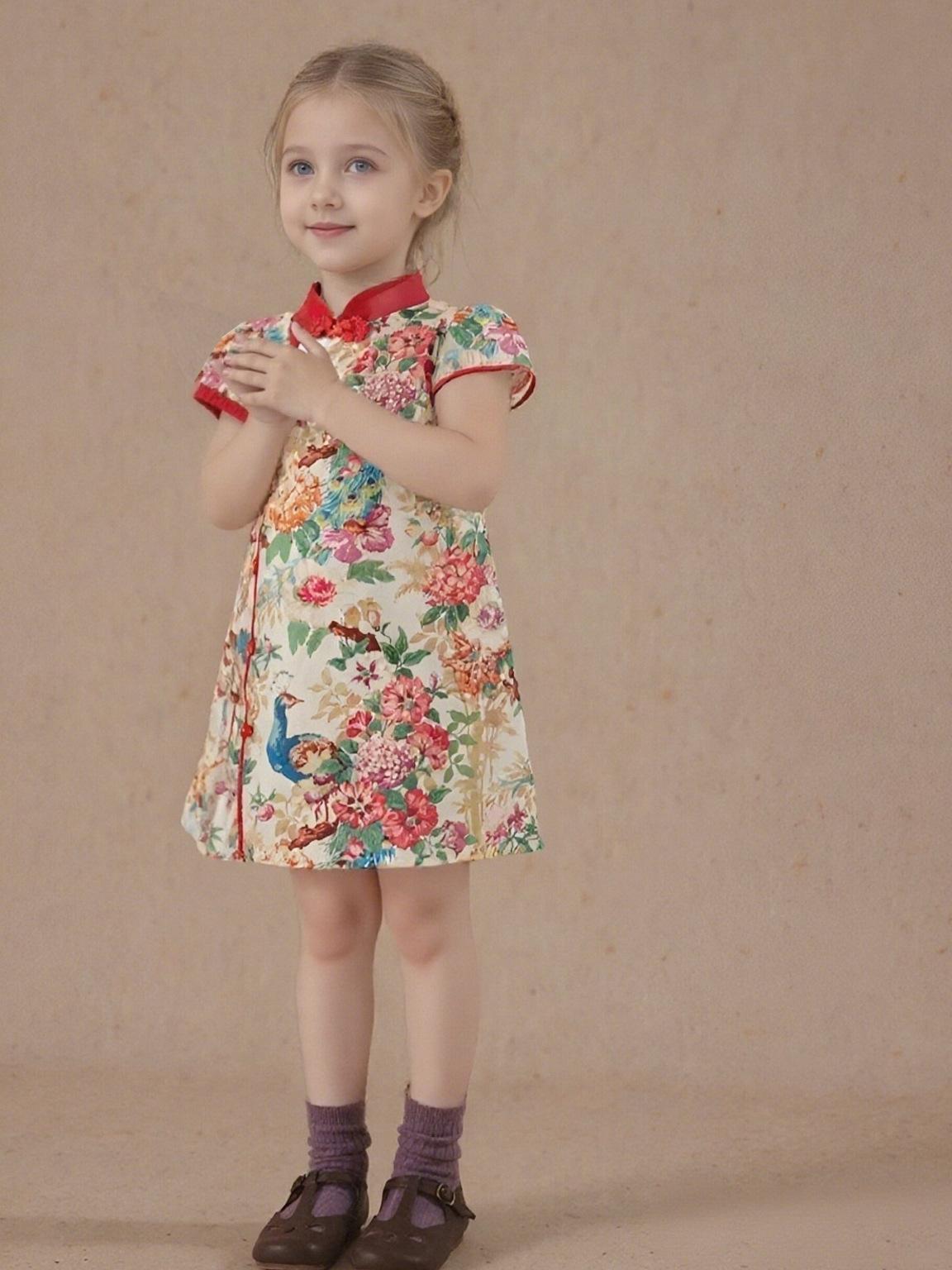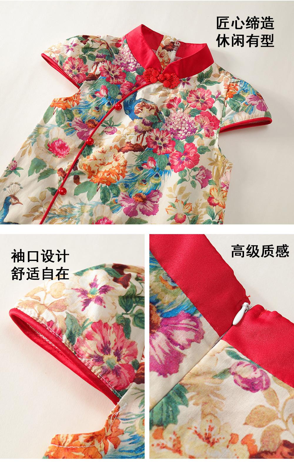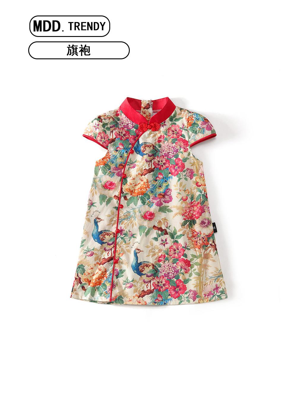 MDD Cheongsam Infantil 2025 Verano Estilo Delgado Niñas Estilo Extranjero Vestido de Princesa para Niña Pequeña Rojo Vestido Estilo Chino