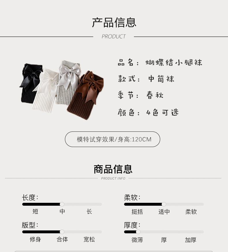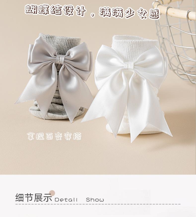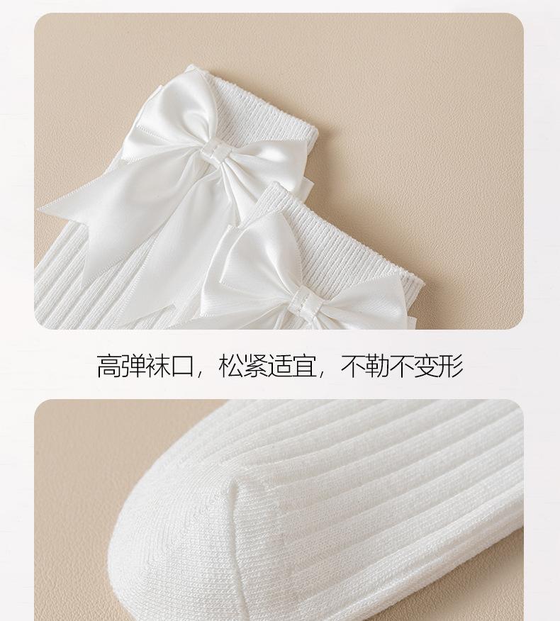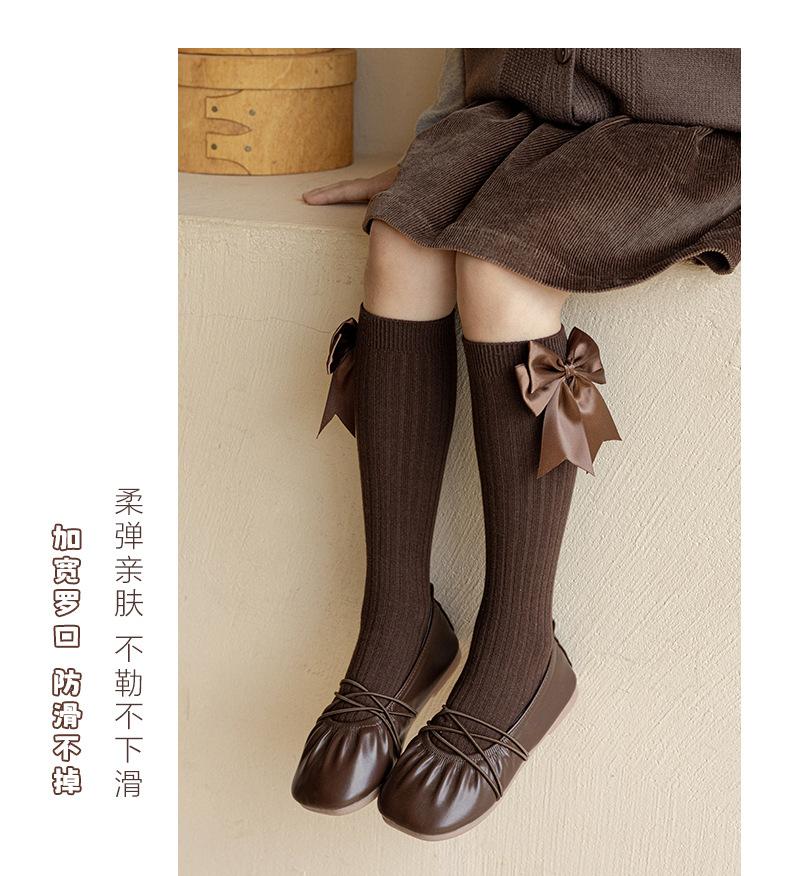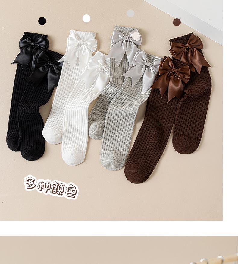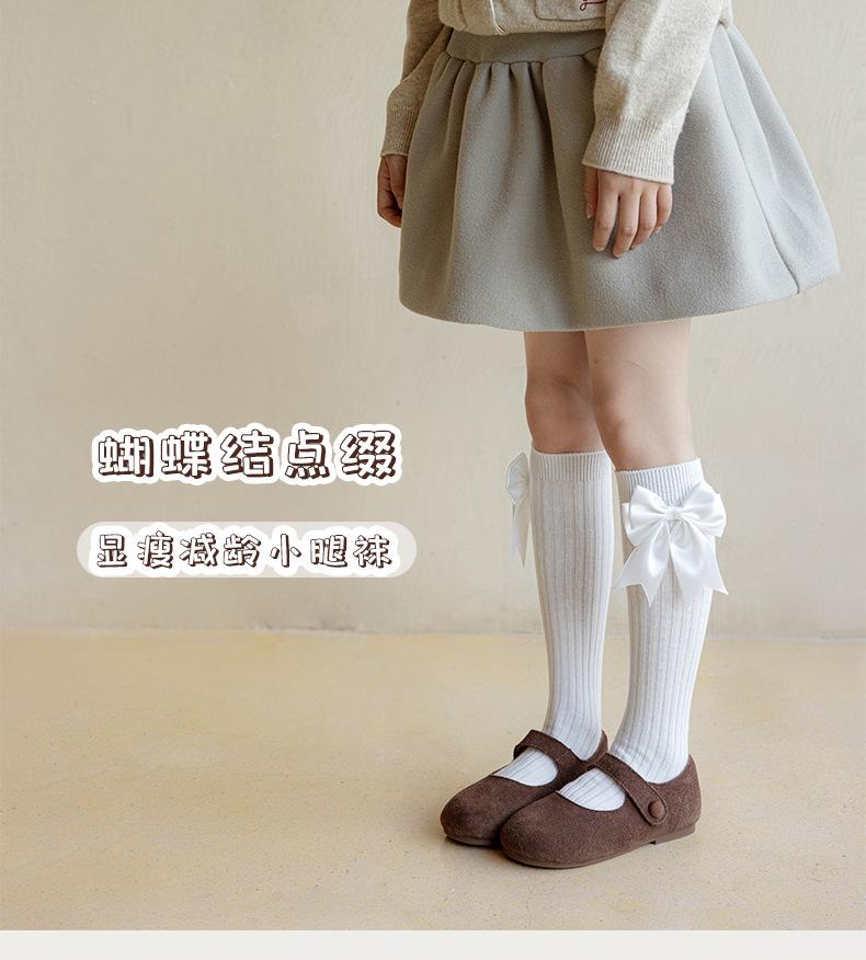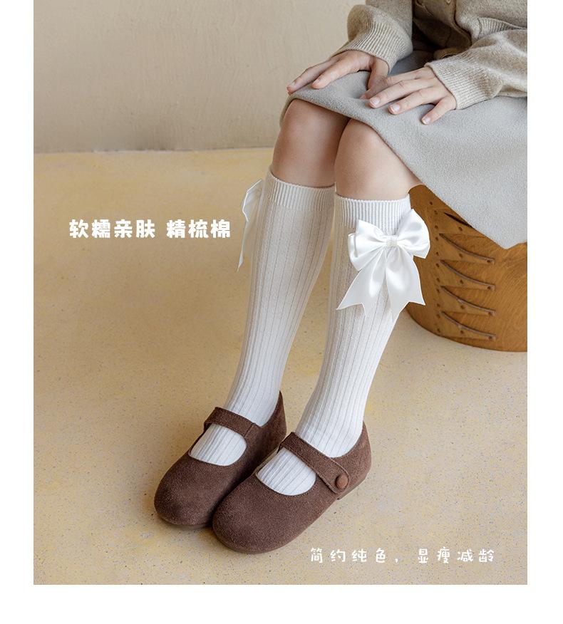 Calcetines de Primavera y Otoño para Niñas con Lazo Grande a Media Pantorrilla Calcetines de Algodón para Niños de Color Sólido Calcetines hasta la Rodilla para Niñas Pequeñas Estilo Princesa Delgados