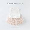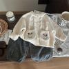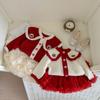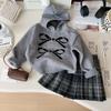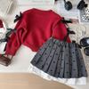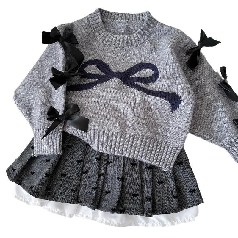 Conjunto de Suéter para Niñas Otoño 2025 Nuevo Conjunto Lazo Manga Larga Ropa de Punto para Niños Falda Media Conjunto de Dos Piezas