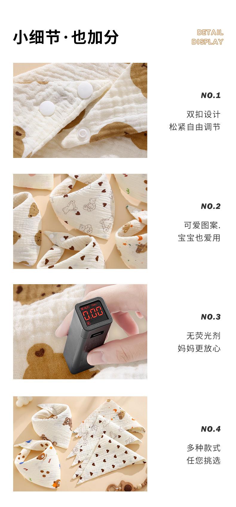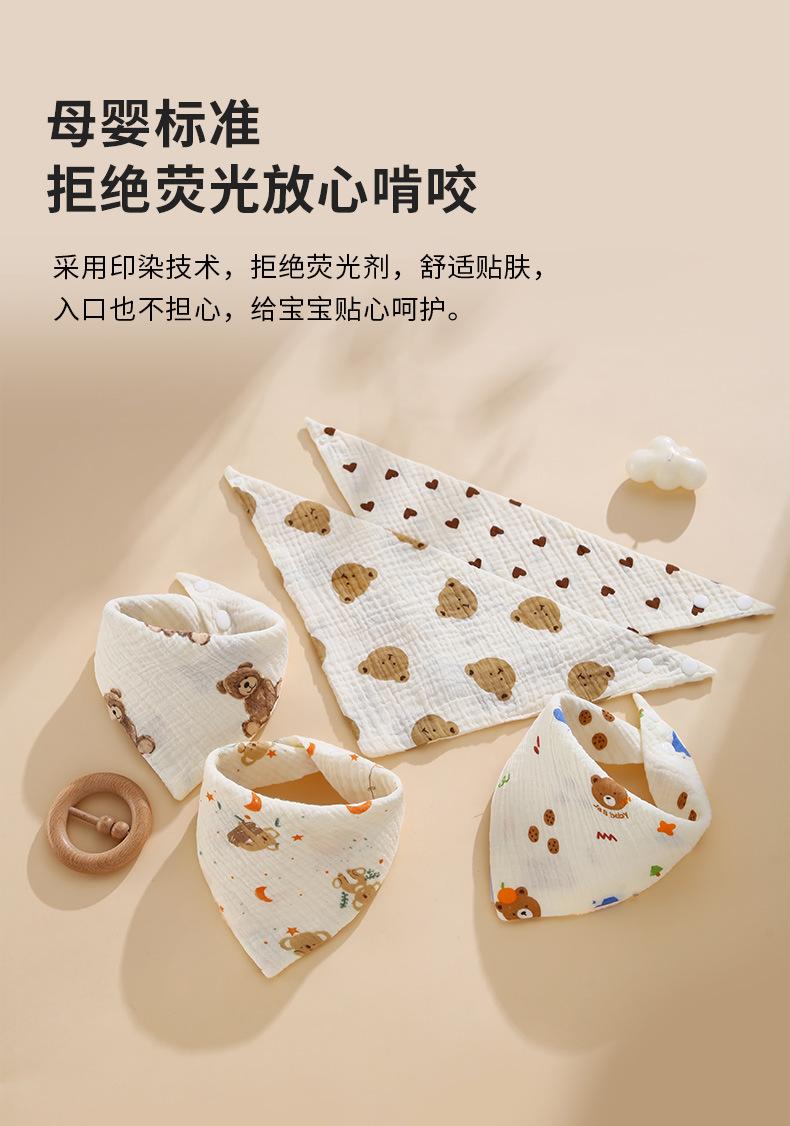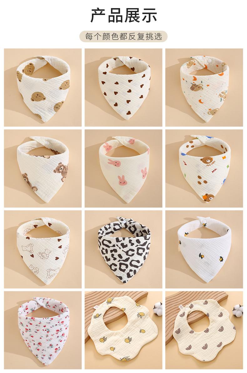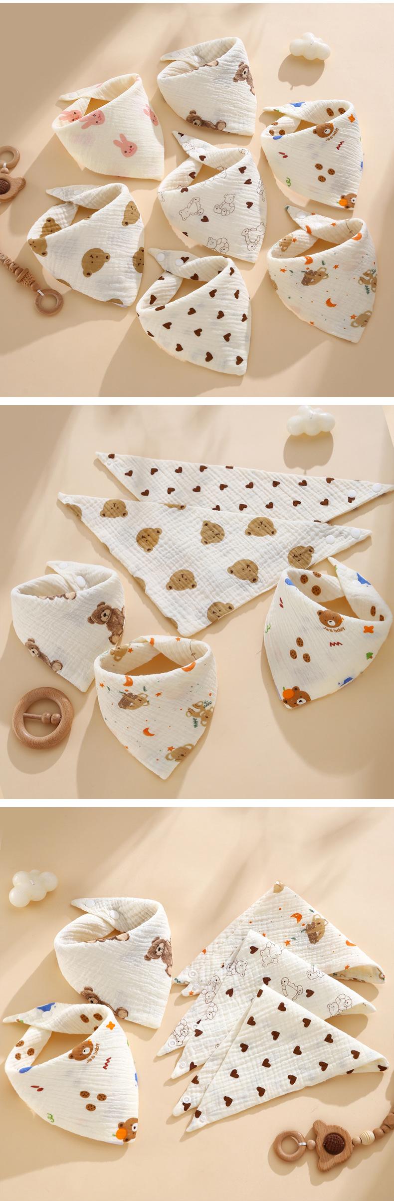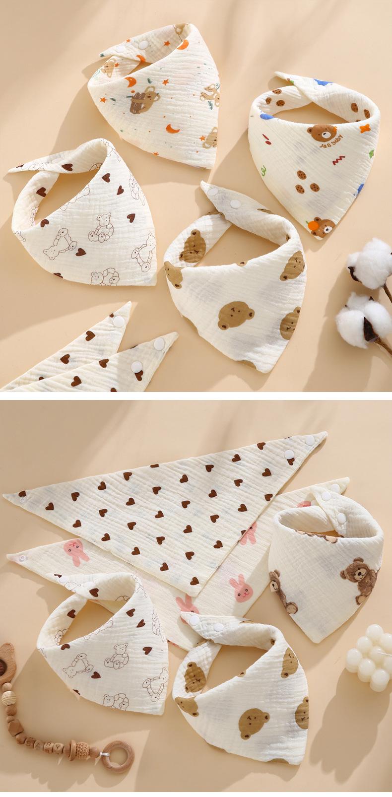 Toalla de Saliva para Bebé Transfronteriza Clase A Crepé de Cuatro Capas Broches de Dibujos Animados Babero Toalla Triangular para Bebé Babero para Recién Nacido