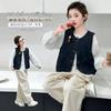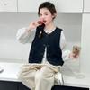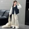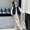 Set de Camisa Chaleco de Mezclilla de Primavera y Otoño para Niñas Ropa de Otoño para Niños Pantalones Anchos Sueltos Conjunto Casual de Tres Piezas